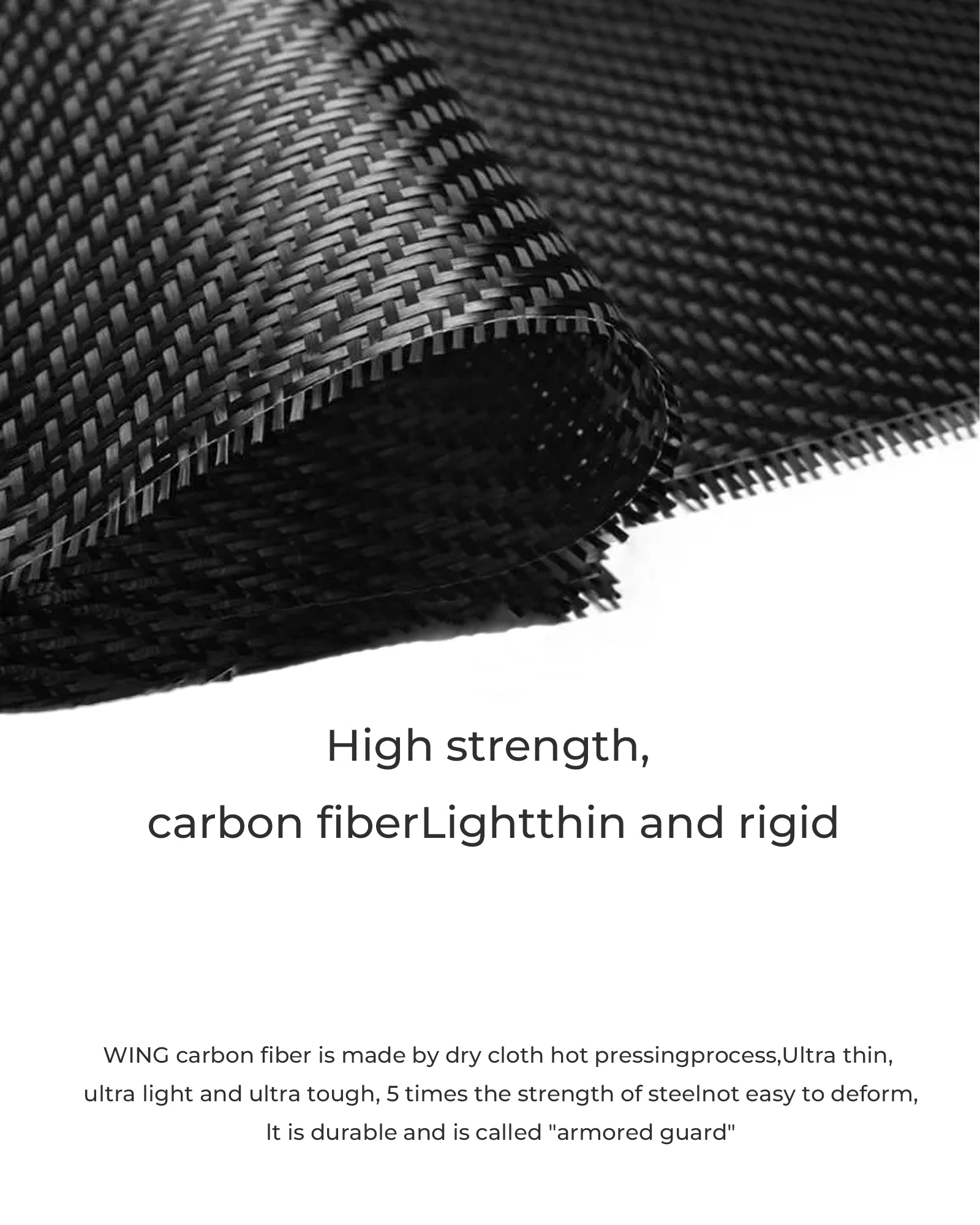 Made with dry cloth hot pressing technology, our carbon fiber is five times stronger than steel, ultra-thin, and lightweight, dubbed the "Armor Guardian" for its toughness.