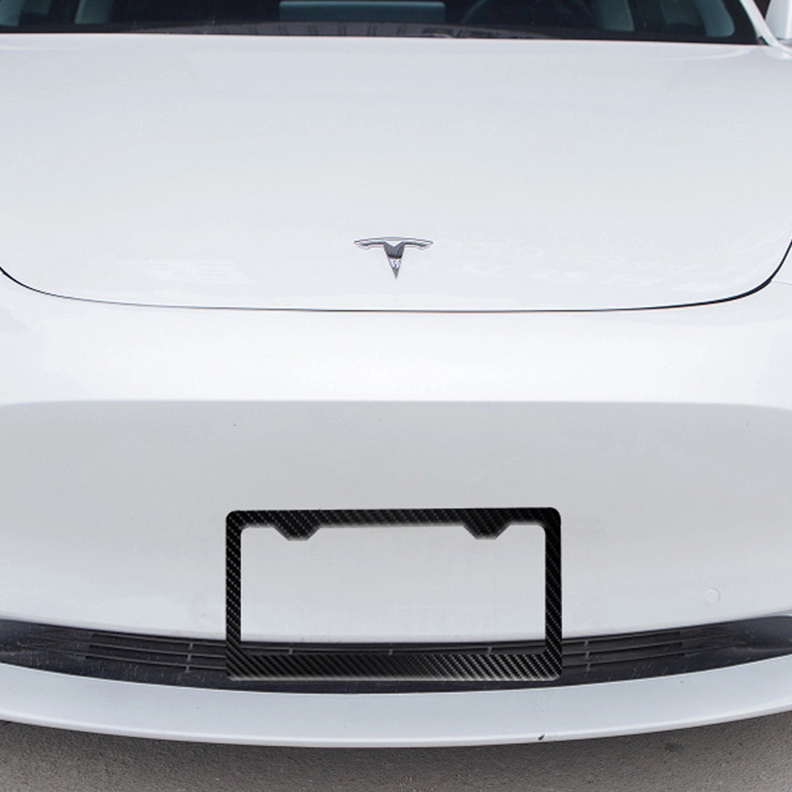 This genuine carbon fiber license plate frame is a high-quality accessory designed specifically for Tesla Model 3/Y. It's made from high-carbon content dry carbon fiber, ensuring durability and easy installation. Providing both protection and a unique appearance, it's tailored for Tesla models and serves as a practical and visually appealing car accessory.