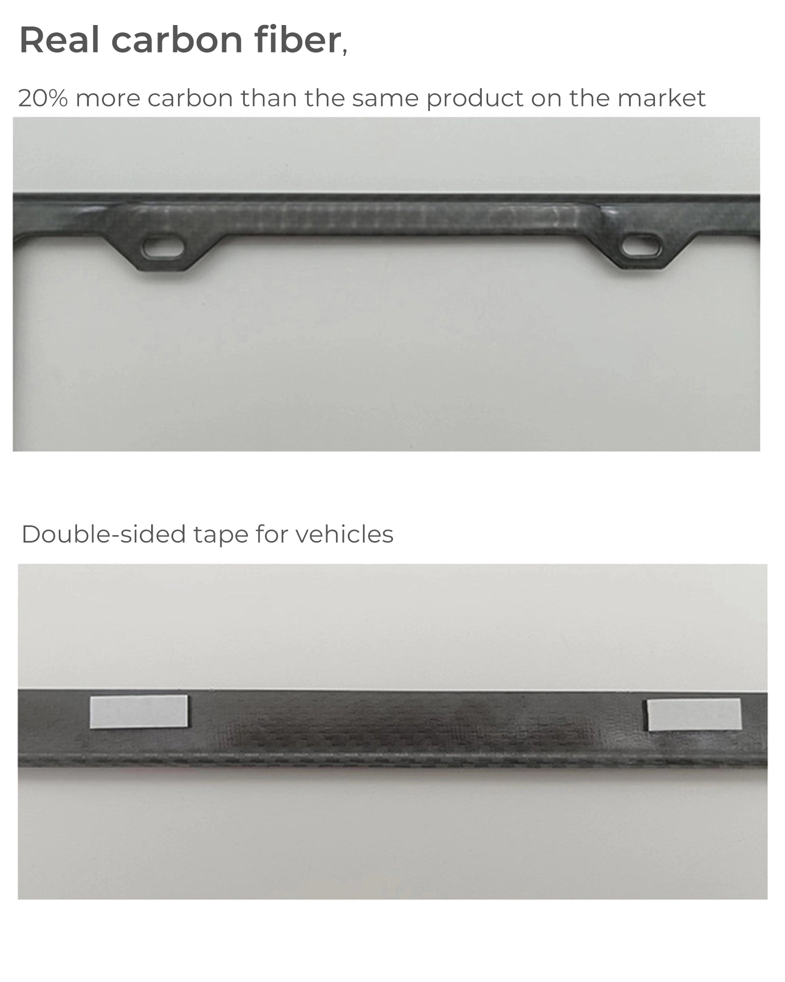 Our license plate frame is crafted from high-quality genuine dry carbon fiber. It boasts a carbon content that's 20% higher than similar products on the market. Not only is it incredibly durable, but it also resists color fading, oxidation, and corrosion, ensuring that your vehicle maintains a pristine appearance over time.