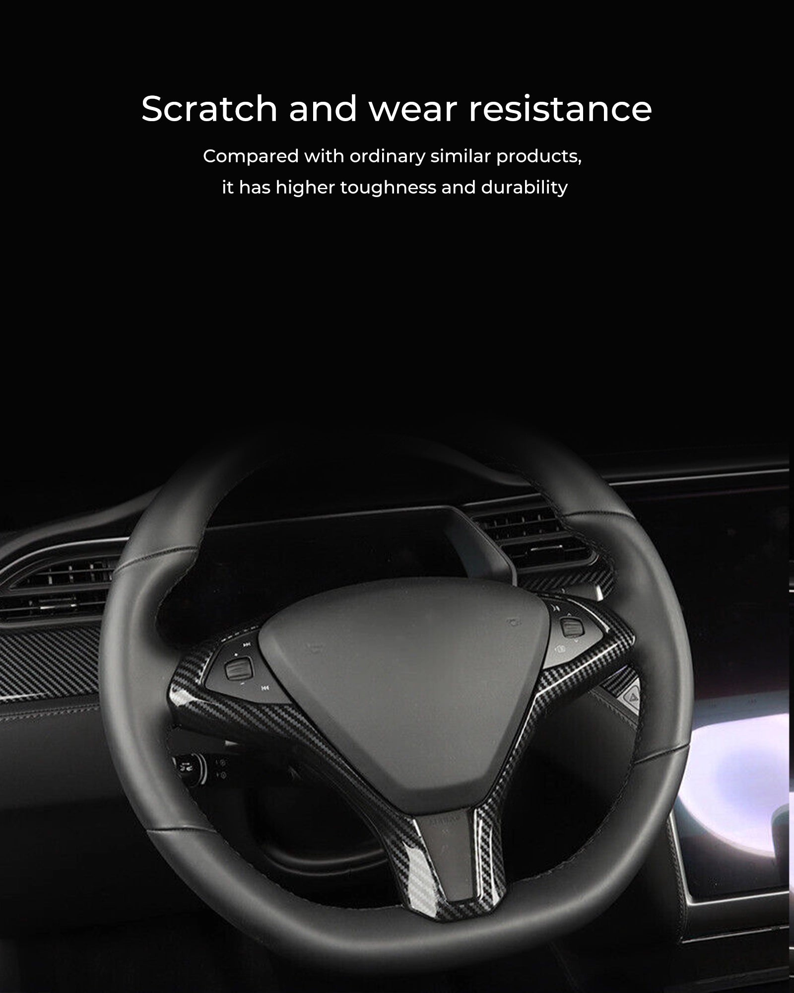 Carbon fiber trims that are precision-engineered to fit Model S/X Steering Wheel