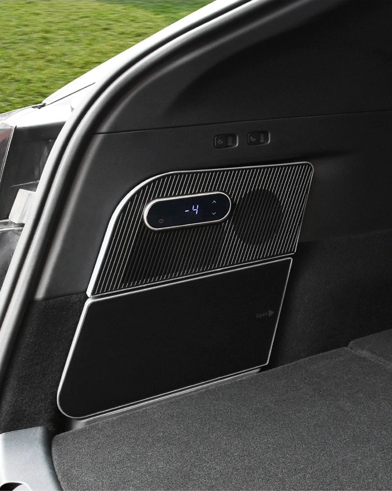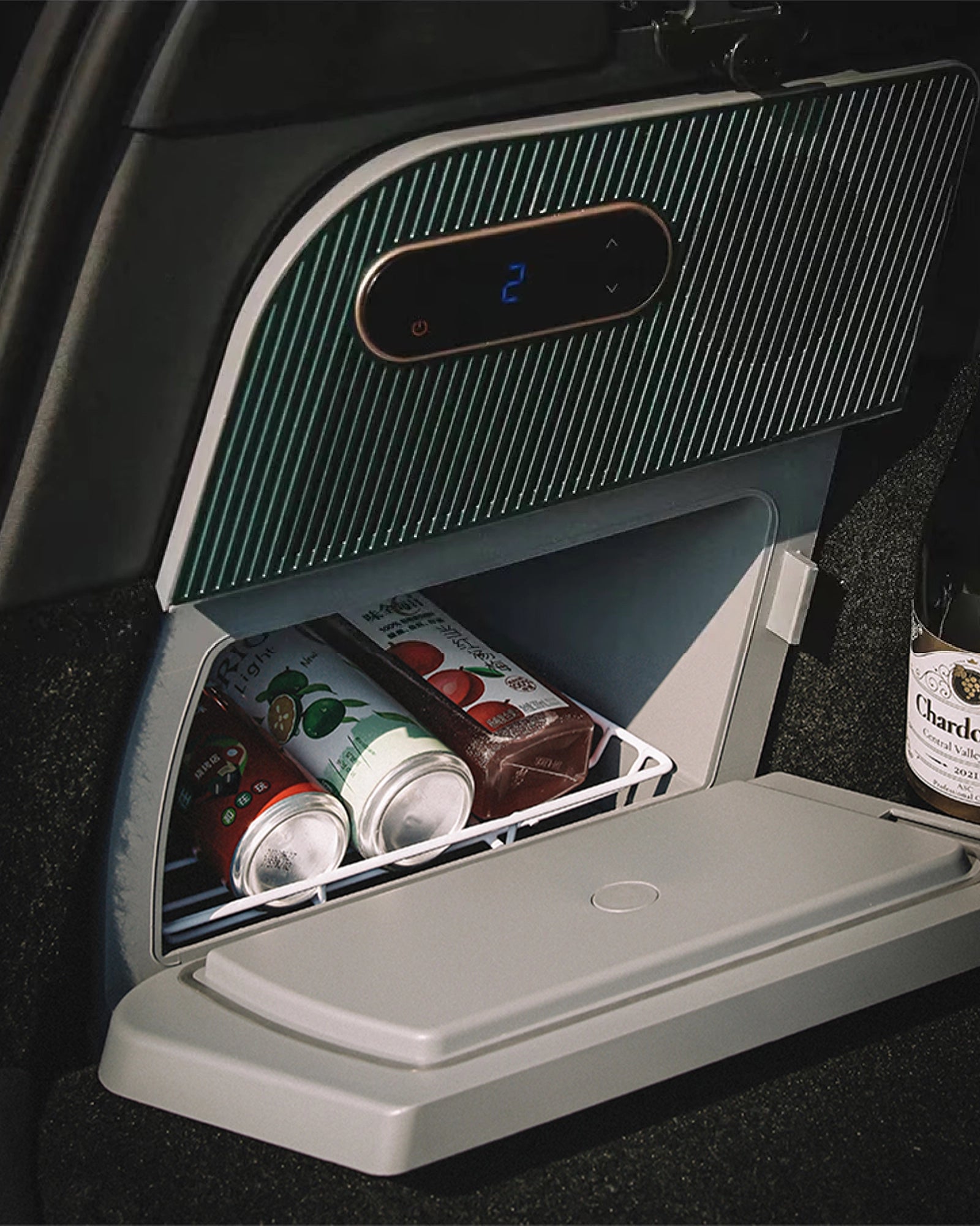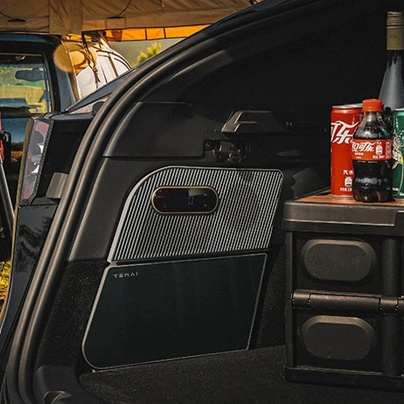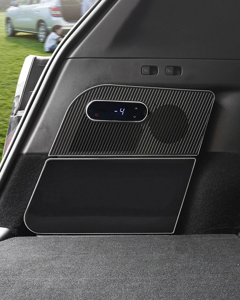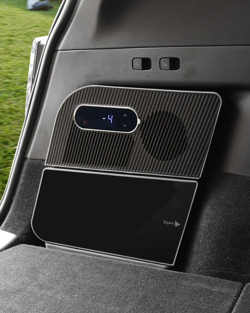 This is a refrigerator device that can be placed inside the car's trunk to maintain the temperature of food and beverages, typically used during long road trips or camping. It's a must-have for outdoor enthusiasts, hikers, and picnickers!