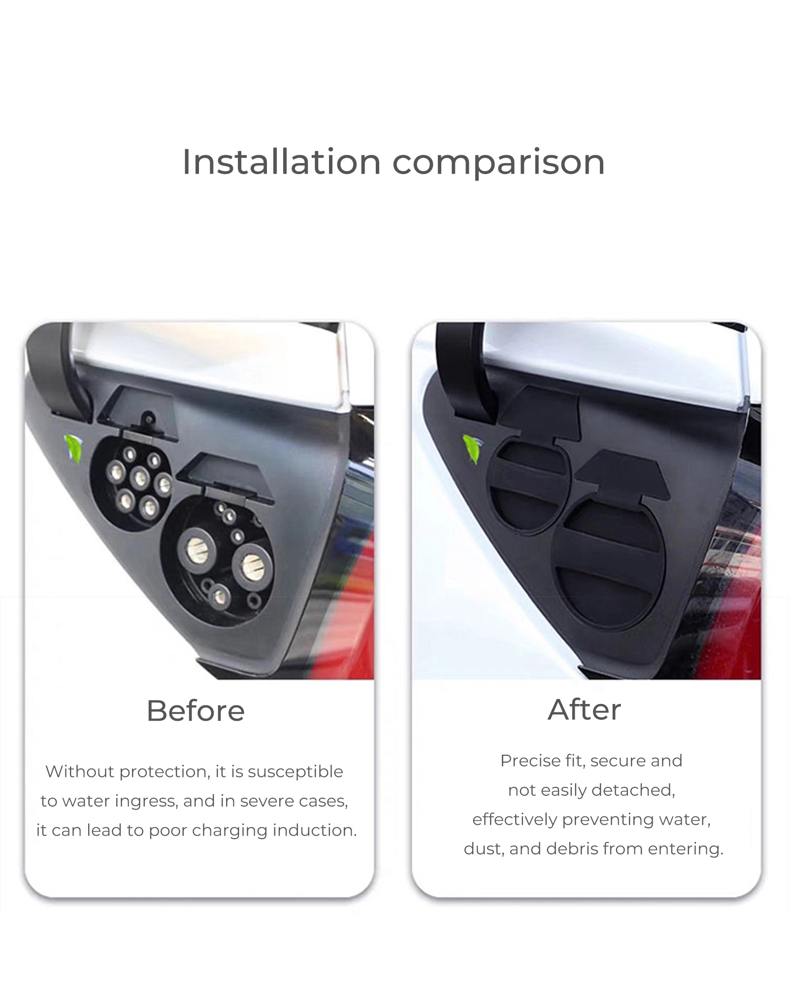 Designed to Tesla's original specifications, made from eco-friendly silicone material, easy to install, and compatible with Model 3, this product provides crucial protection for your charging port against rain, dust, and debris, preserving important vehicle details.