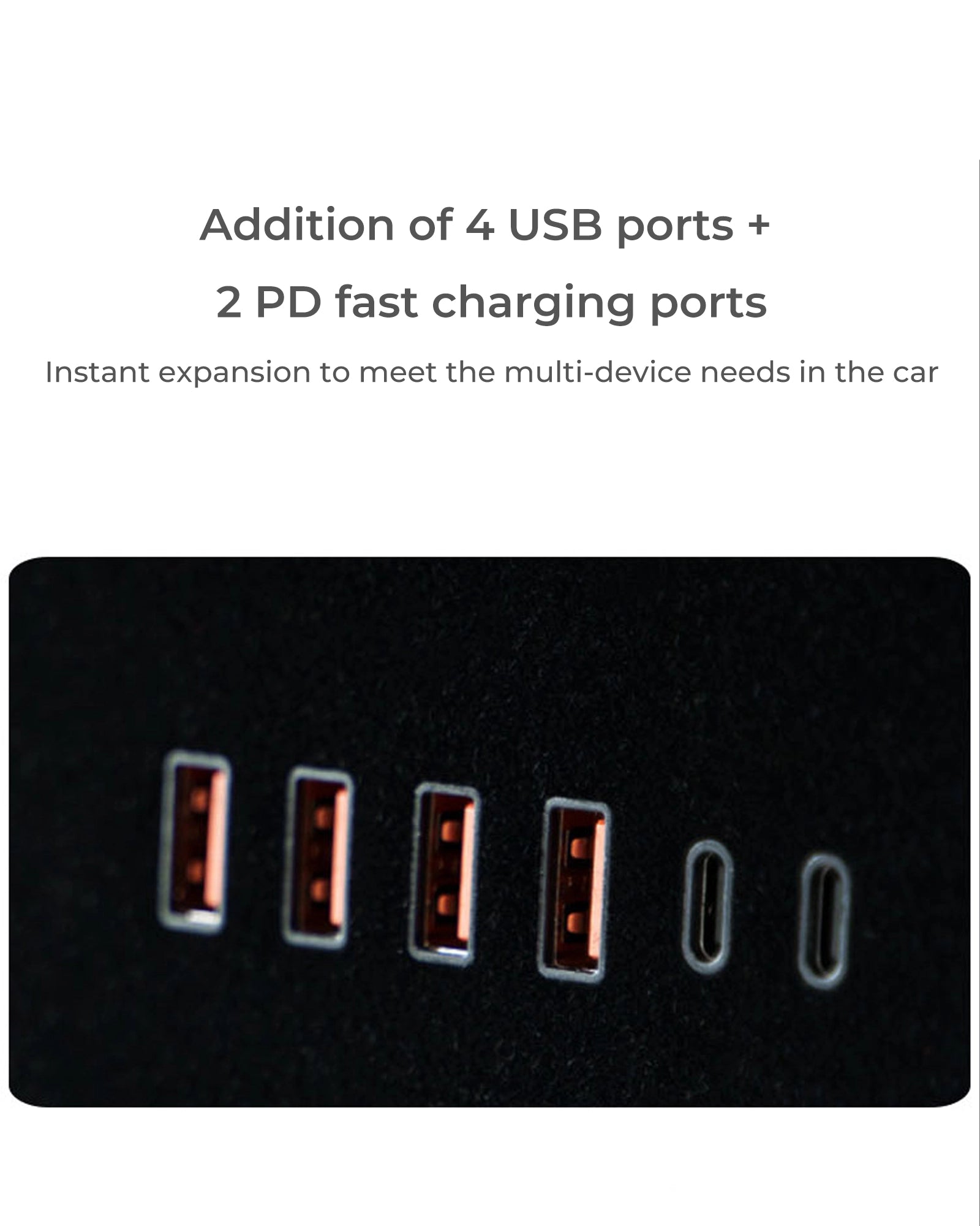 Features 4 additional USB ports and 2 PD fast charging ports to meet various in-car device charging needs. You can simultaneously use multiple devices such as music players, USB drives, game controllers, and more.