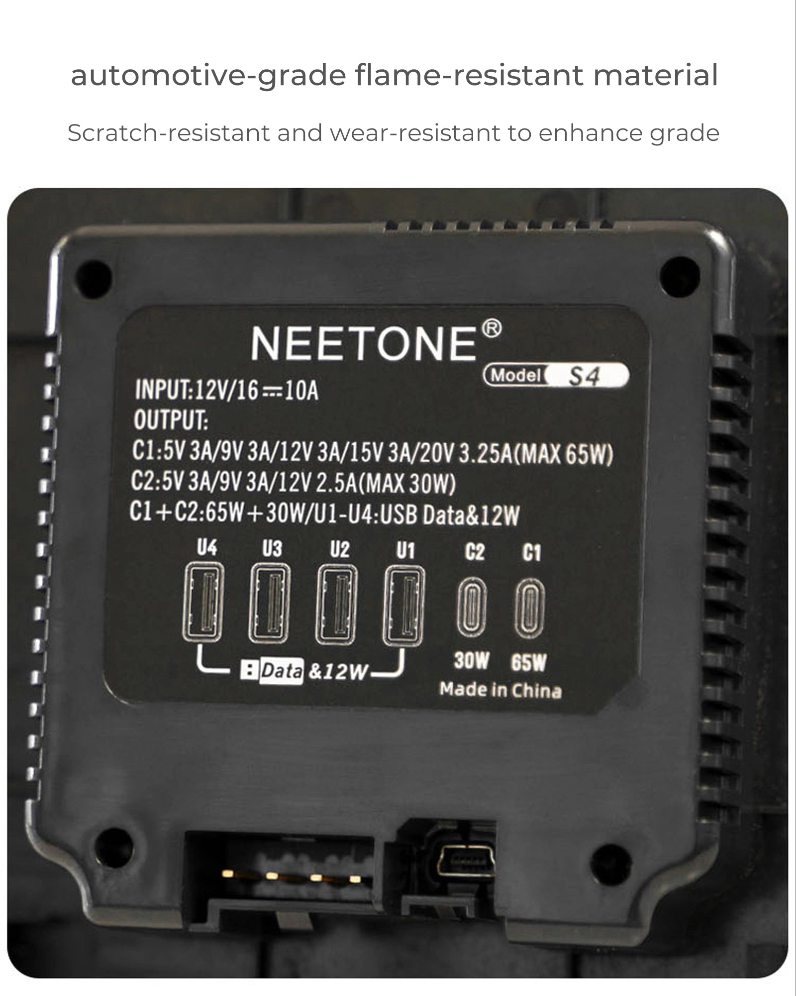 This product offers 65W + 30W dual-channel fast charging, 4 USB, and 2 PD ports for versatile device charging, with a Tesla-matching design for fire resistance, durability, and seamless integration into the car's control panel. Note that different devices may affect max output; testing for optimal performance is advised. It enhances and protects the car's control panel.