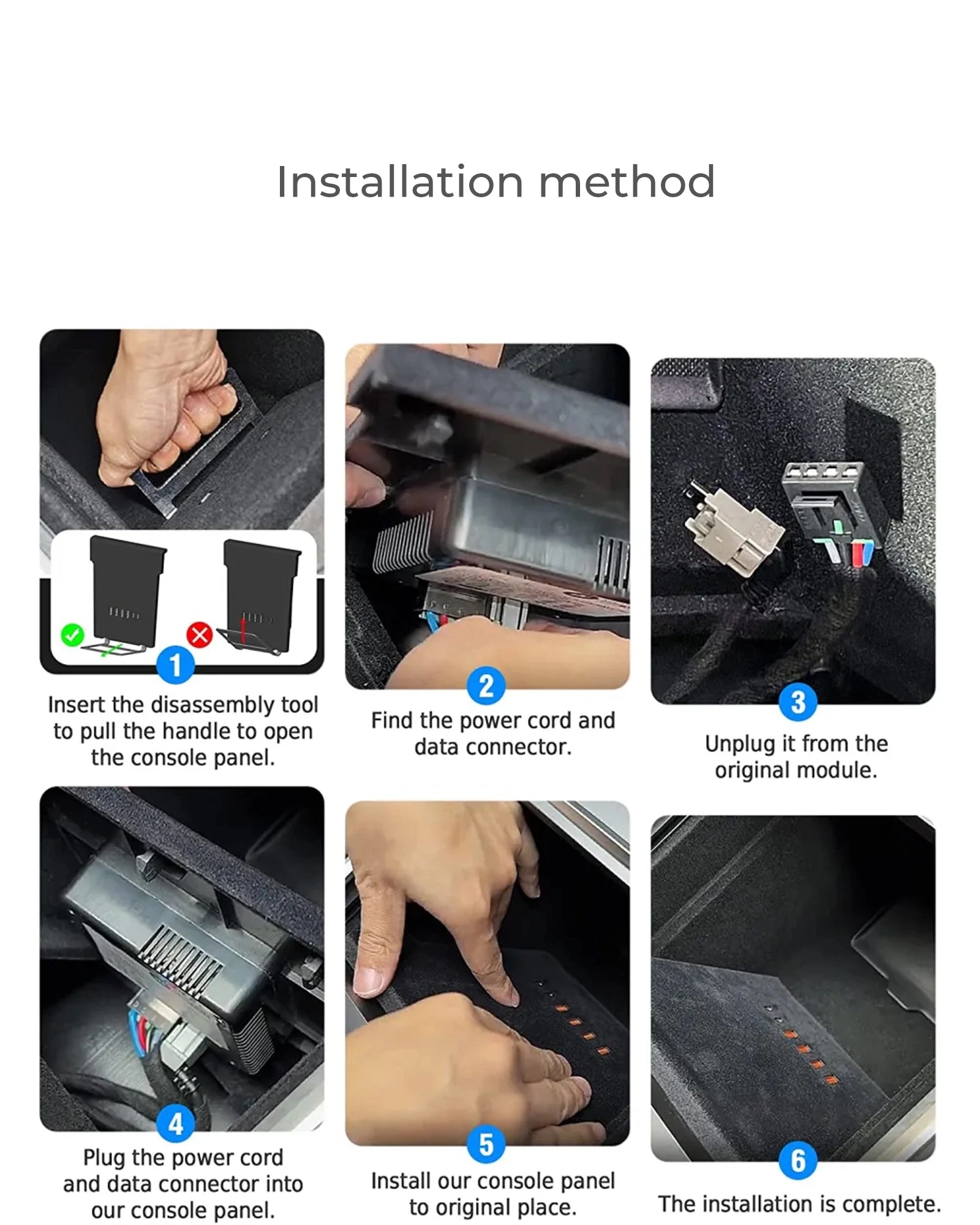The product is designed using the original car's molds and manufactured with precision, ensuring a seamless fit with the in-car central control panel, providing an excellent appearance and user experience.
