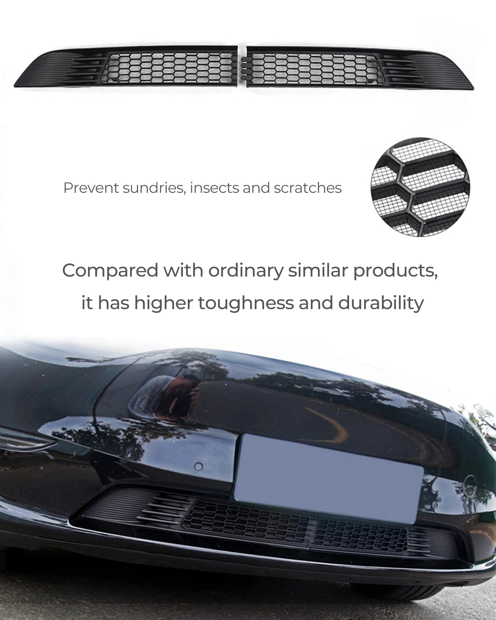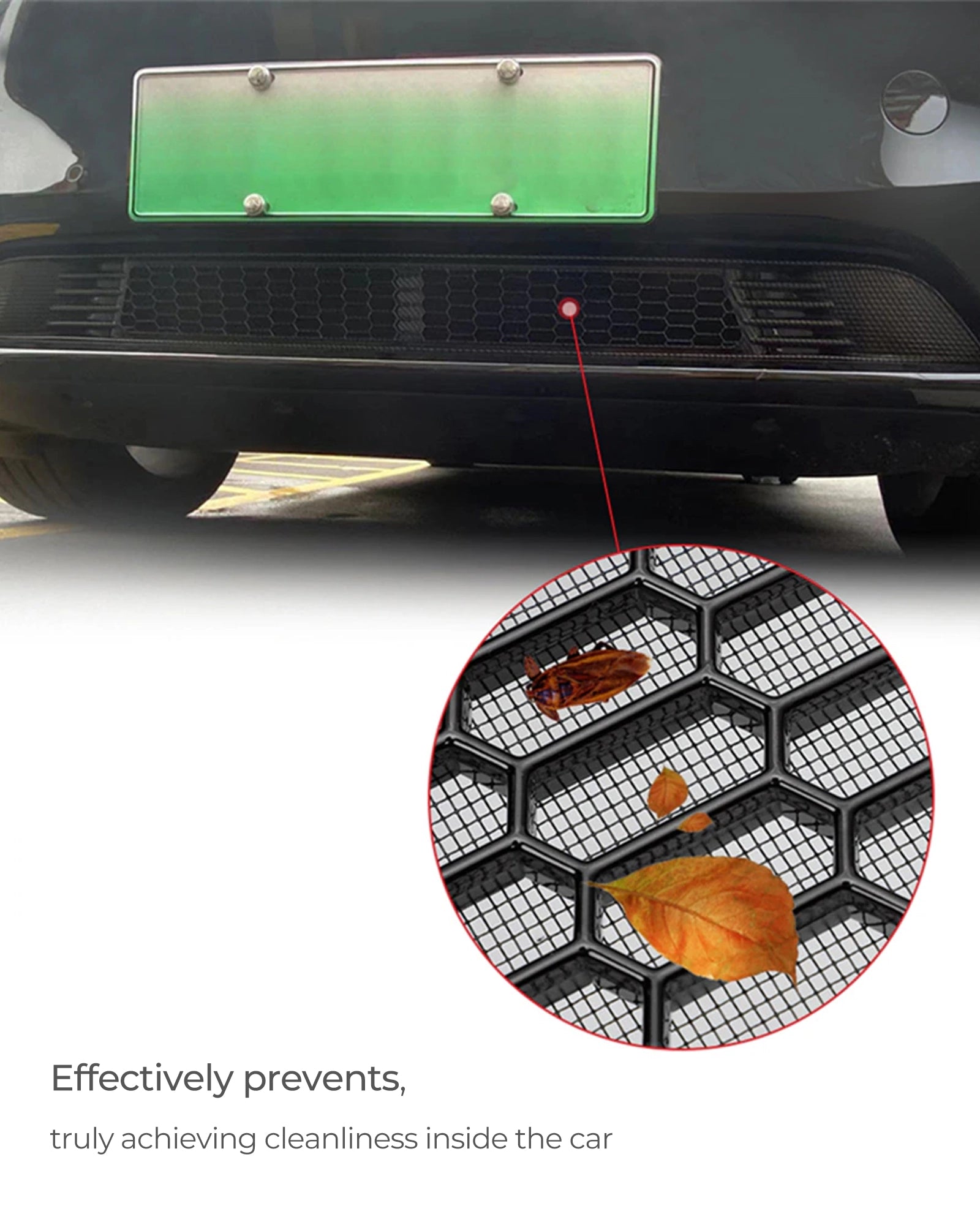 The primary purpose of this product is to provide added protection for the lower bumper, guarding against scratches and insect intrusions, while also preserving the cleanliness and hygiene of the vehicle's interior.
