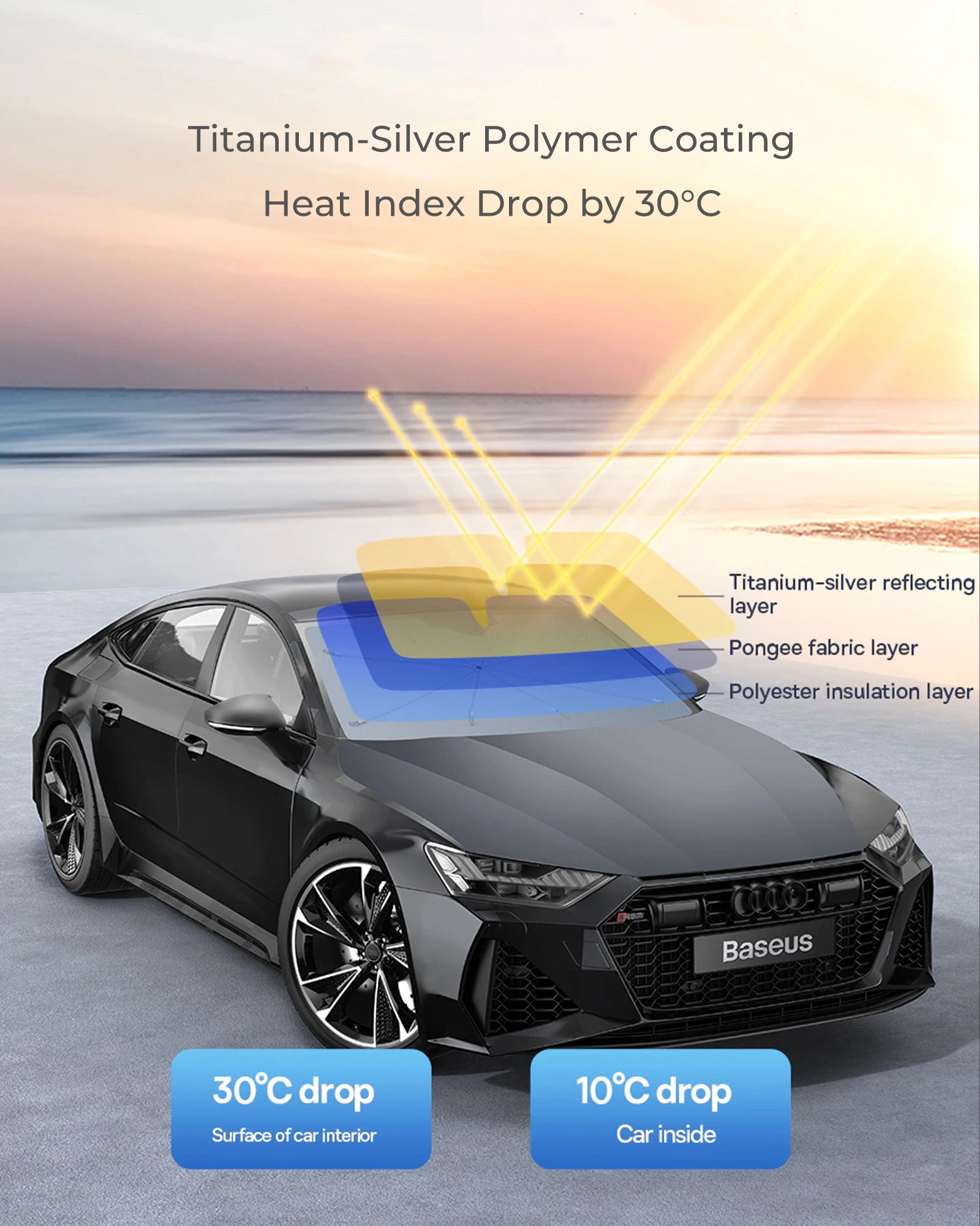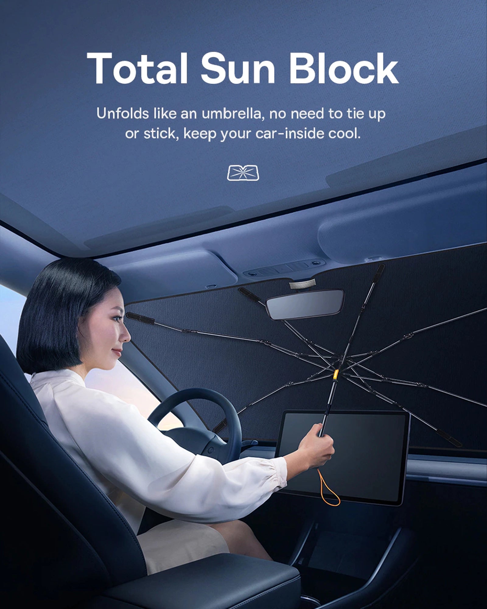 No more fussing with ties or adhesives. Our sun shield unfolds effortlessly like an umbrella, ready to use in seconds.