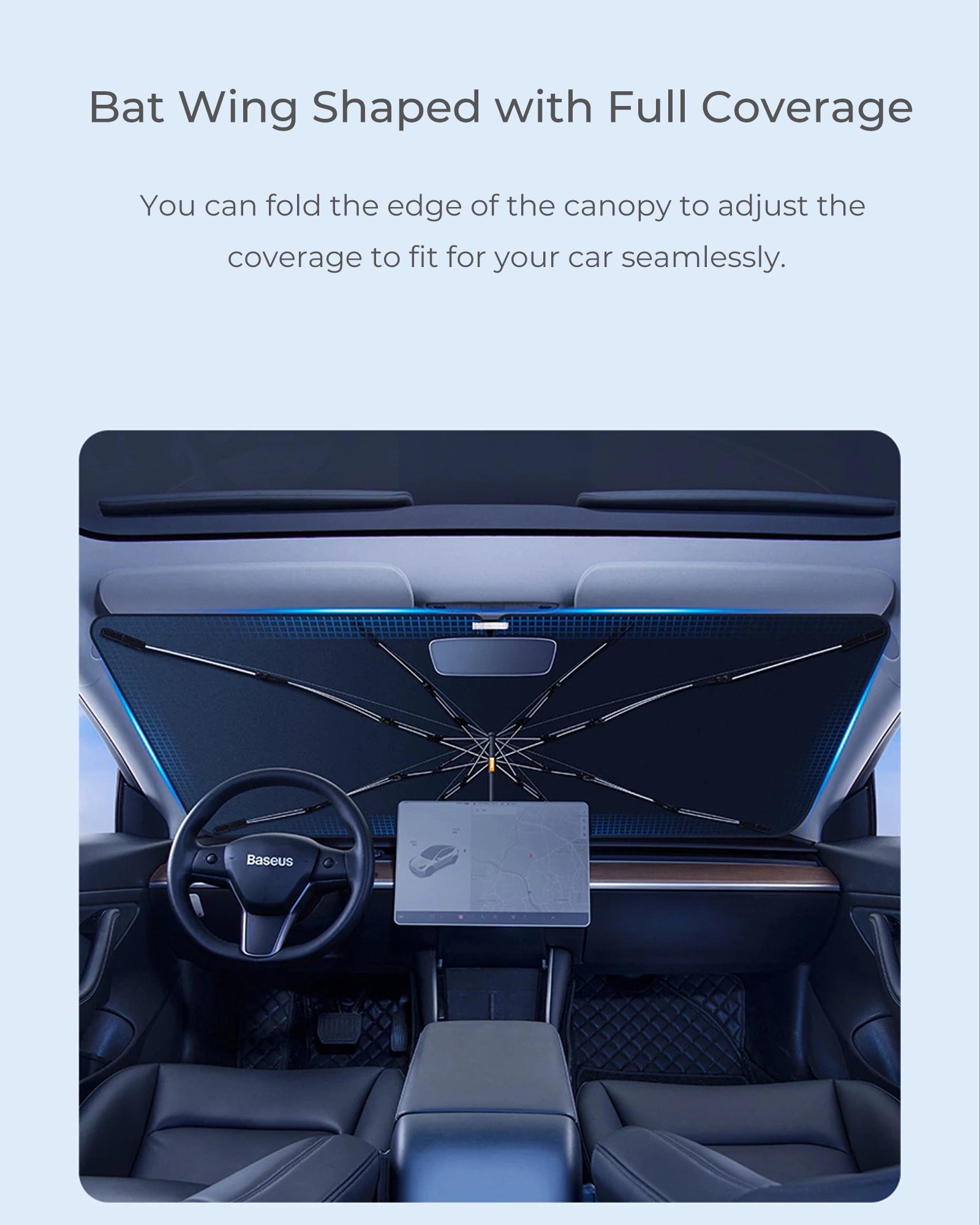 The bat wing-shaped design offers full coverage for your windshield, and you can easily adjust the canopy's edge to fit your car perfectly.