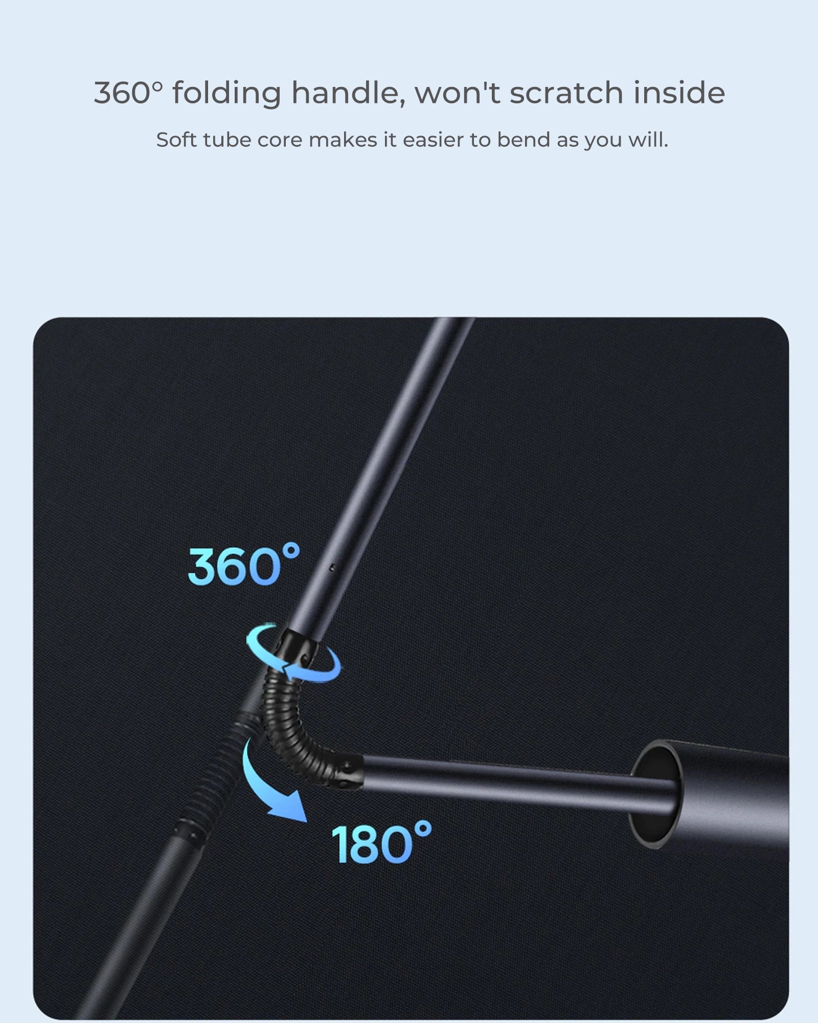 The 360° foldable handle is designed with a soft tube core, ensuring easy bending without any risk of scratching your car's interior.