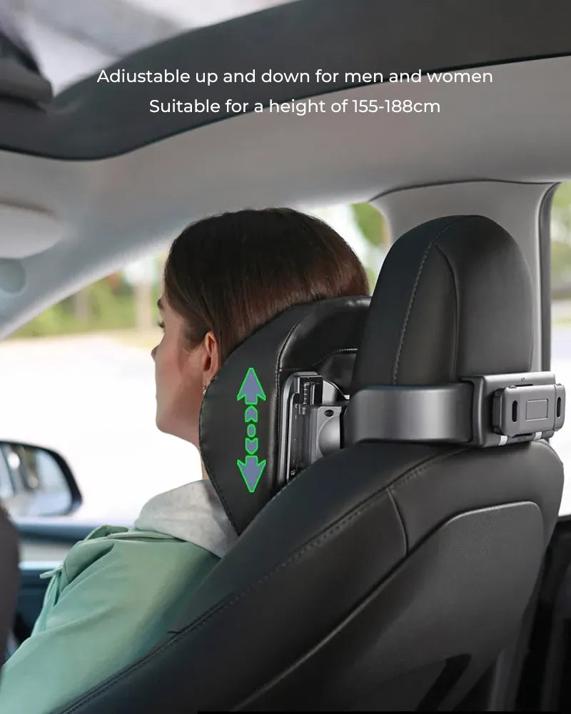 We have specially upgraded this neck pillow to ensure a perfect fit for the Model 3/Y. Whether you are the driver or a front passenger, our car headrest can be flexibly adjusted to accommodate various height requirements. No more worries about neck discomfort, as this neck pillow can easily adjust upwards, downwards, forwards, and backward, ensuring you always find the most comfortable position.