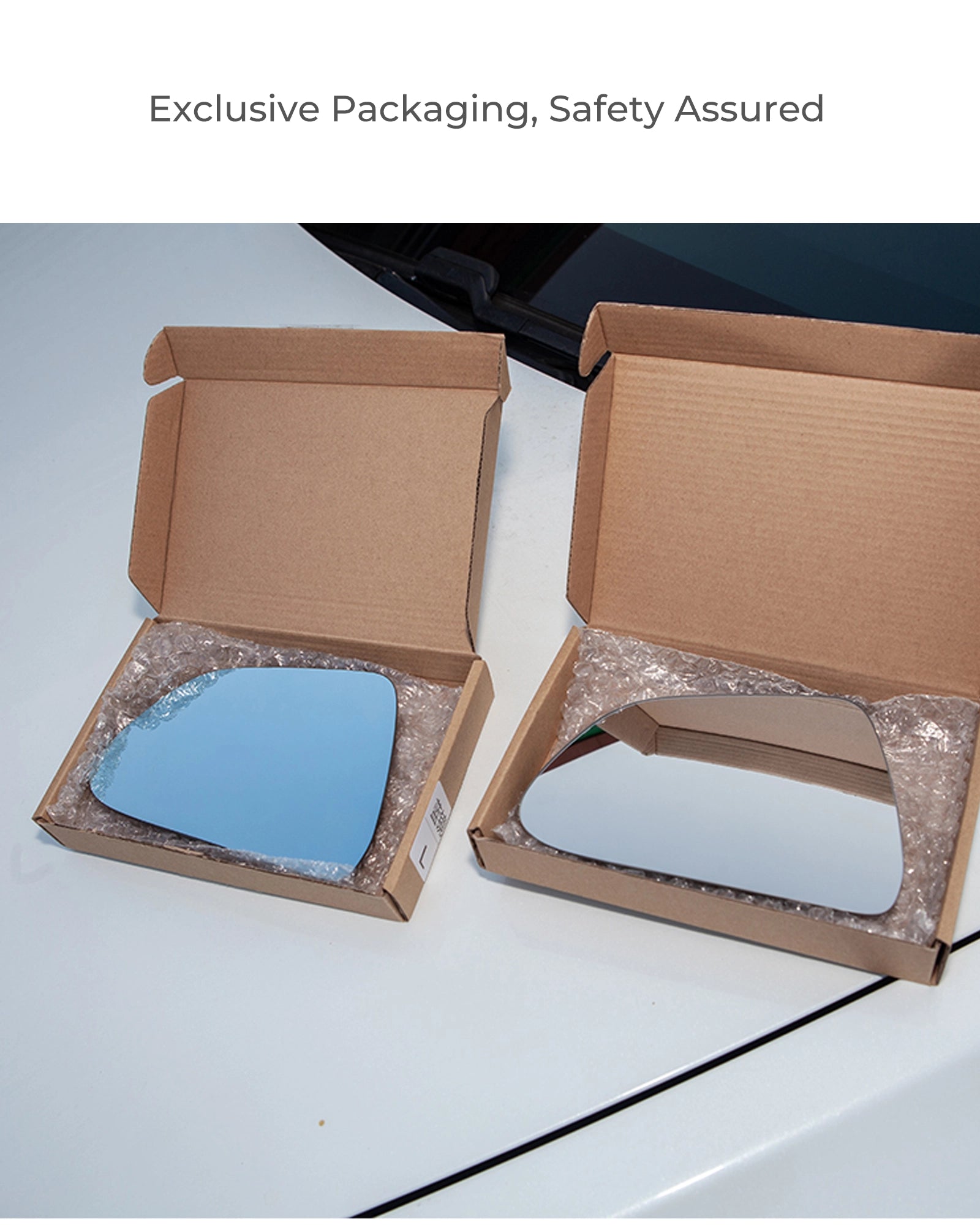 Our side mirrors offer a 40% larger field of view compared to the original ones. We have optimized the curvature of the lens to better align with ergonomics, reducing dizziness when looking at the rearview mirror.