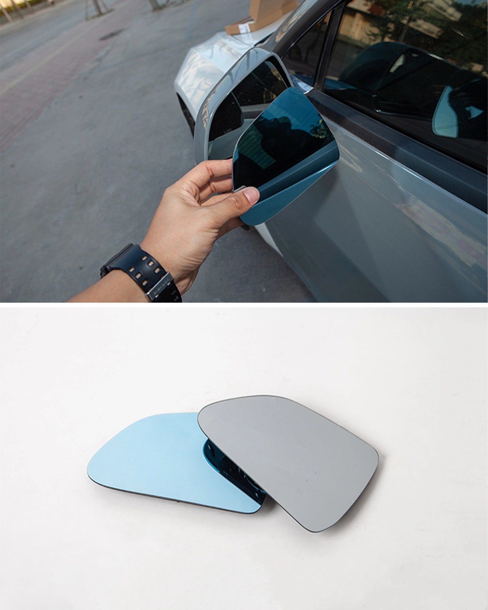 There are two style options, regular and blue light. The blue light version is an upgrade, featuring a 2.5D high-definition blue lens with anti-glare effects. Each set includes two pieces of lens, ensuring clear reflection even when facing strong rear lights, enhancing driving safety.