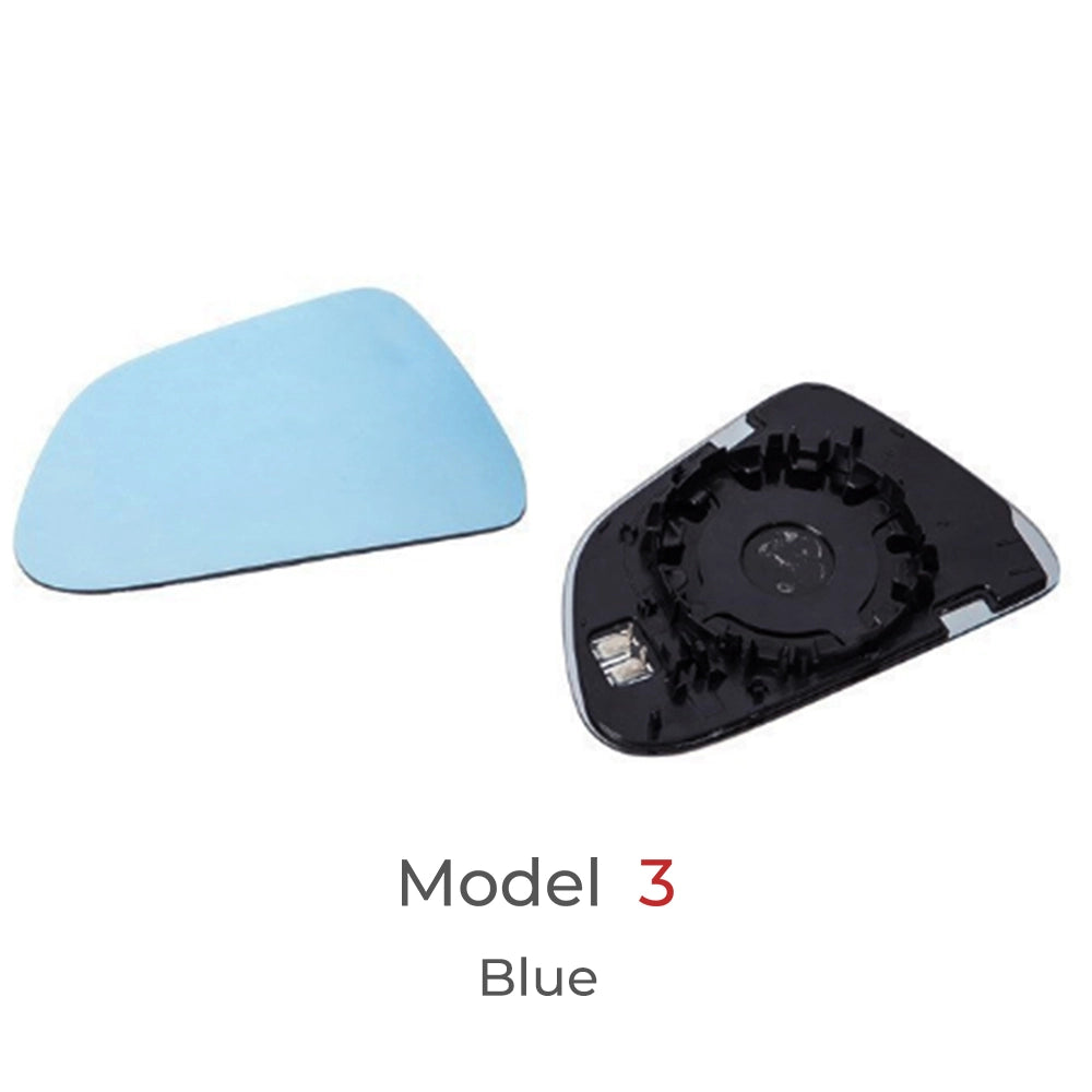 This product offers 2 lens options: regular and blue light. Blue light enhances anti-glare. Redesigned side mirrors provide a 40% larger view, reducing dizziness. It has a heating element for easy installation in Tesla Model 3, Model Y. Made with high-quality glass, it's temperature-resistant and offers rain, fog, and glare resistance for added safety and convenience.