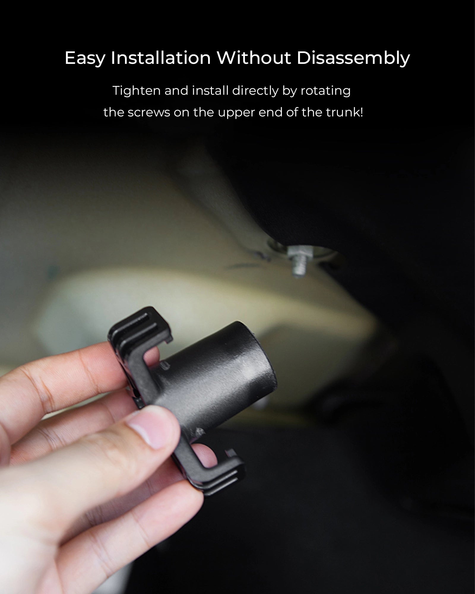 This Model 3 trunk hook is designed for Tesla Model 3, offering added convenience and storage. It can support up to 20 kg, allowing for easy hanging of heavy items like bags, backpacks, and luggage, increasing cargo capacity.