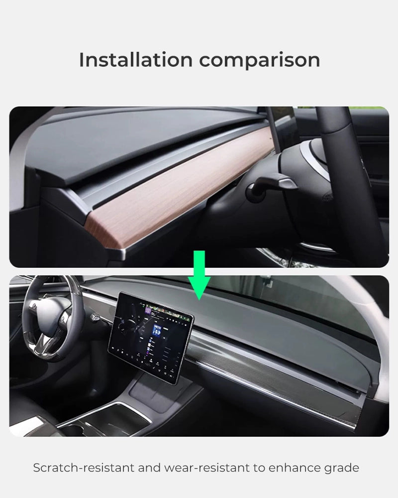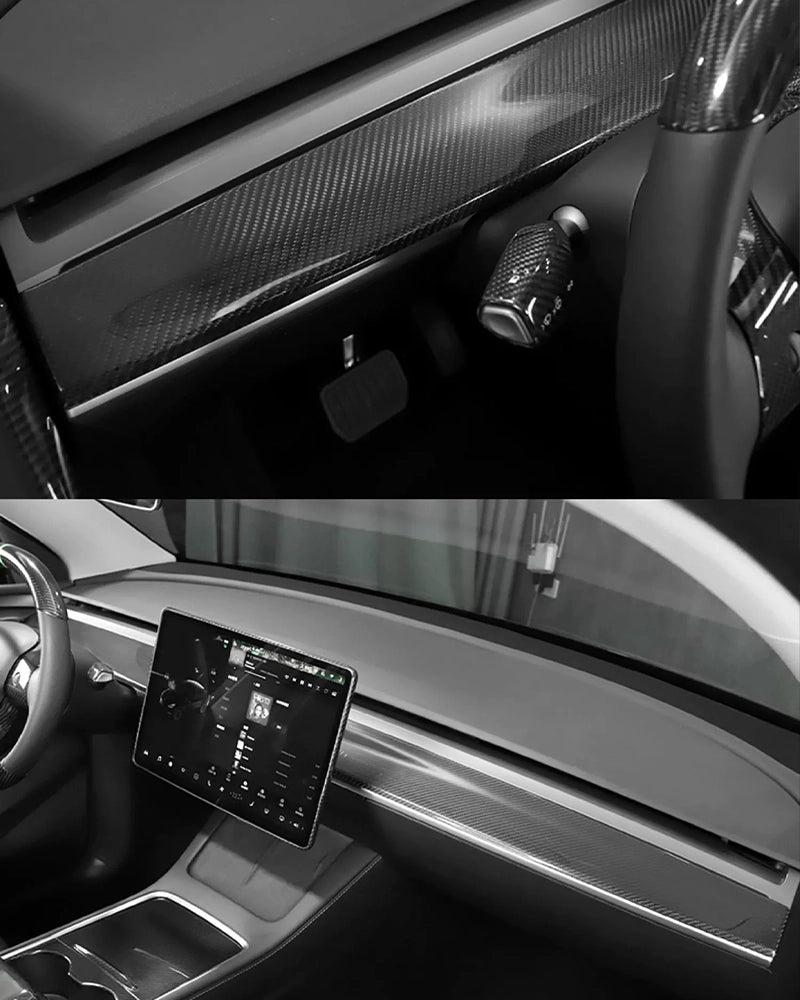 In summary, the Tesla Carbon Fiber Dashboard Cover Wrap for Model 3/Y is the perfect combination of form and function, designed to meet the needs of discerning Tesla owners. Its superior carbon fiber content and exquisite design not only protect your dashboard from wear and damage but also enhance the overall look of your vehicle's interior. Effortless to install and built to last, this dashboard wrap is an essential upgrade for anyone looking to add a touch of elegance and durability to their Tesla. Don't miss the opportunity to transform your vehicle's interior with our premium dashboard cover wrap. Order now and experience the ultimate in protection and style.
