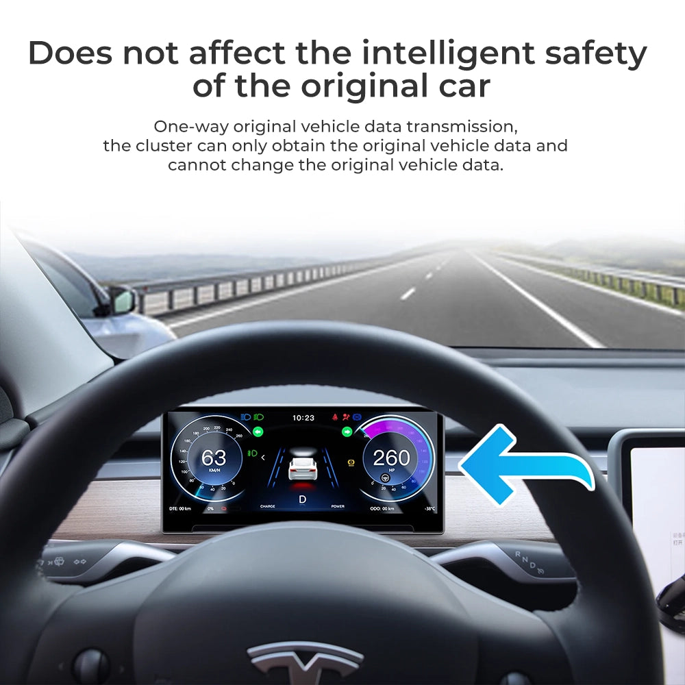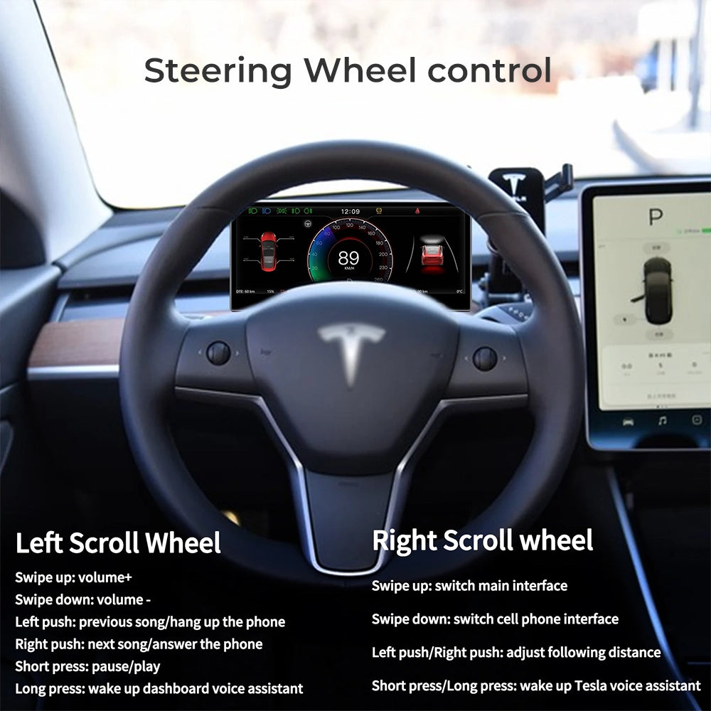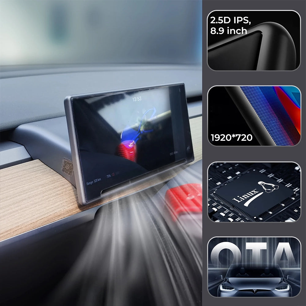Tesla Front Display Carplay Speedometer Head Up Air Vent Camera HUD Instrument Cluster Tesla 3/Y F9 Driver Dashboard RWD Screen