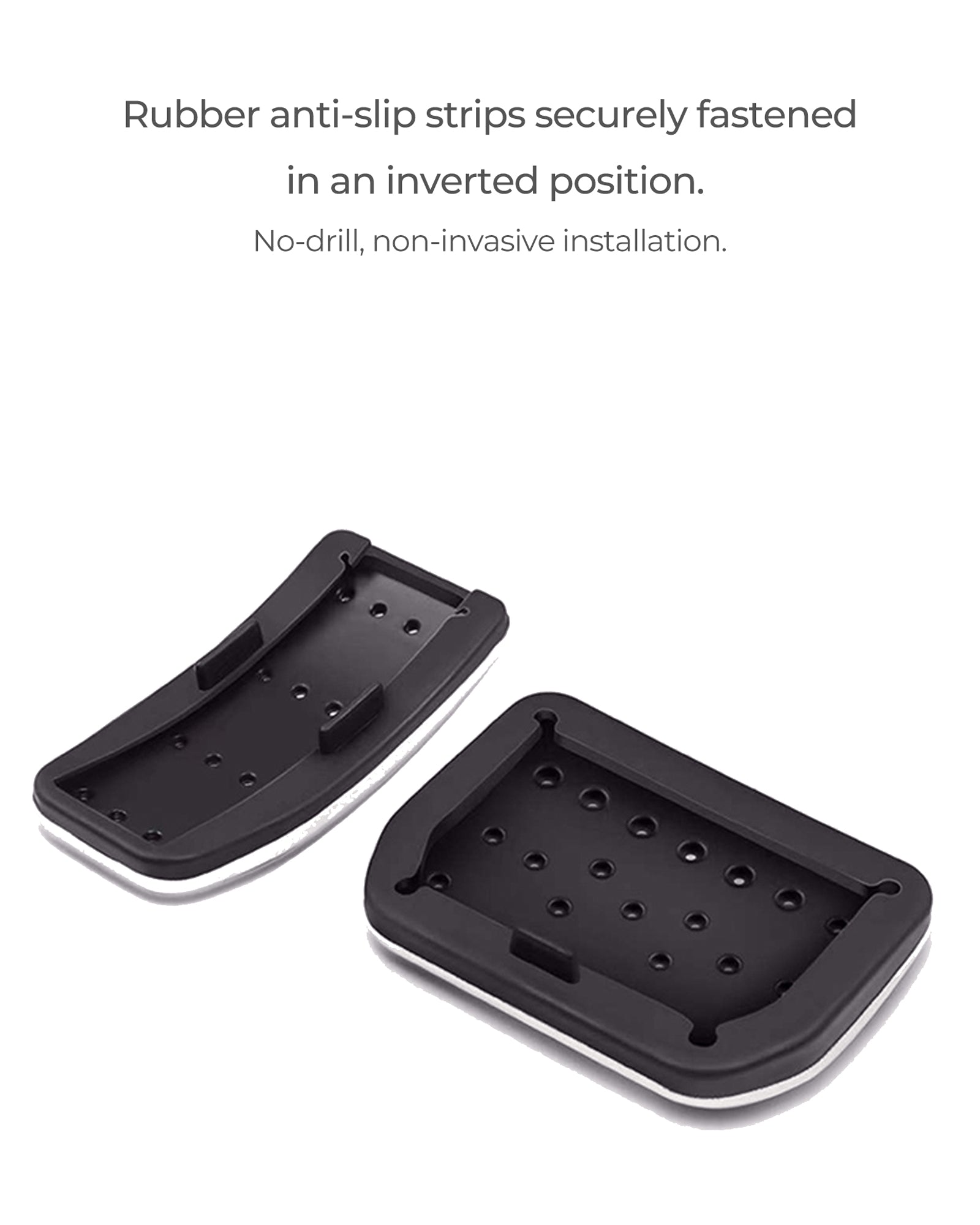 Installing these brake and accelerator pedals requires no drilling or vehicle damage. The reverse-mounted rubber anti-slip strips securely adhere to the pedals without harming your vehicle.