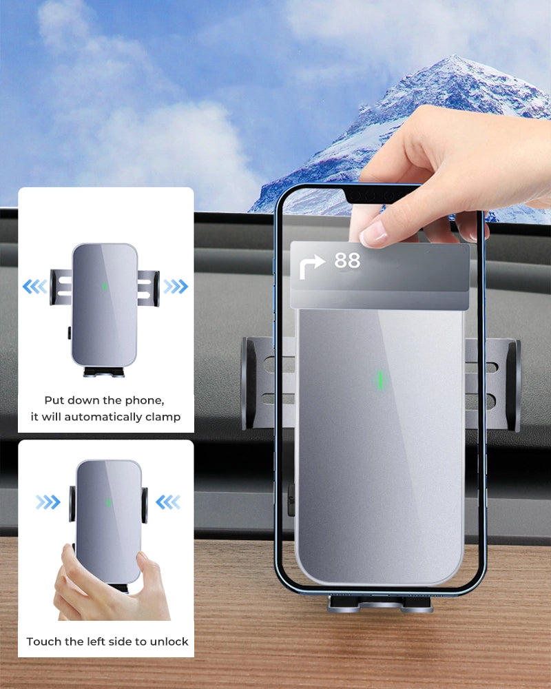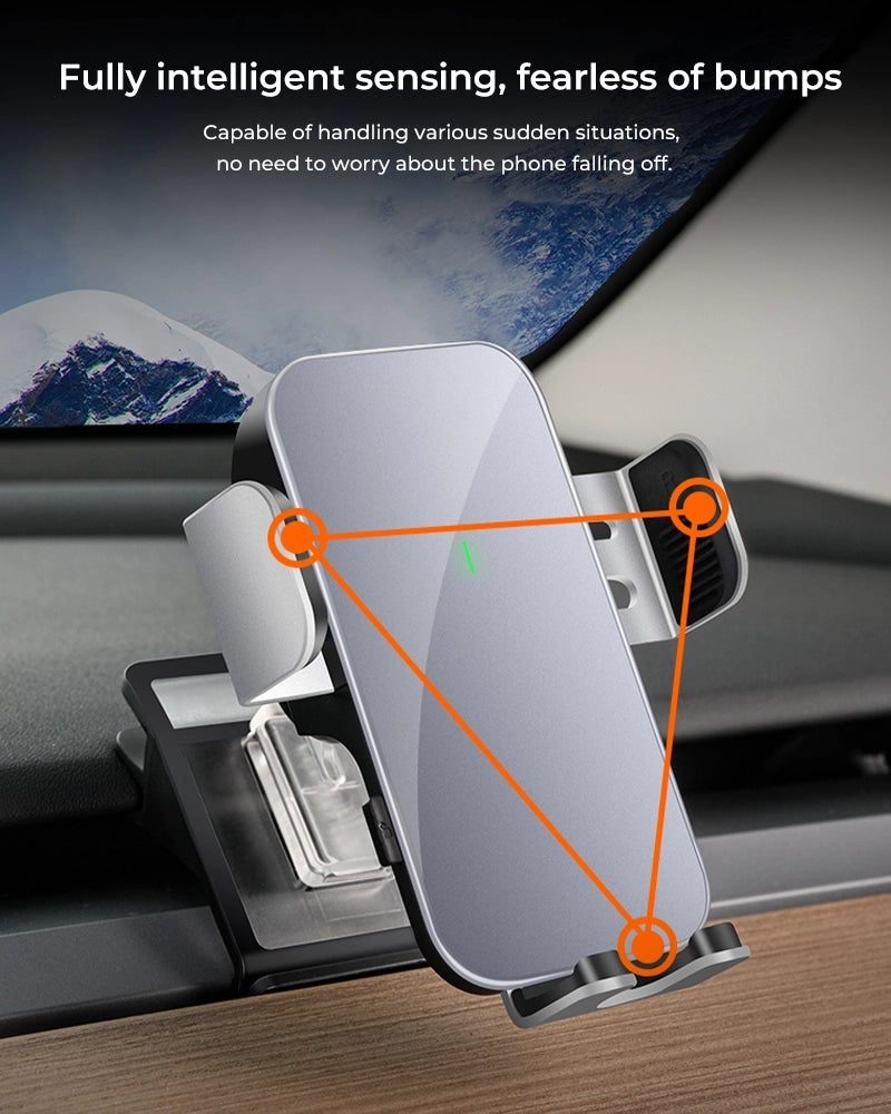 Upgraded triaxial clamping design automatically secures the phone firmly in place as soon as it's set down, remaining stable even during sudden stops or on bumpy roads.