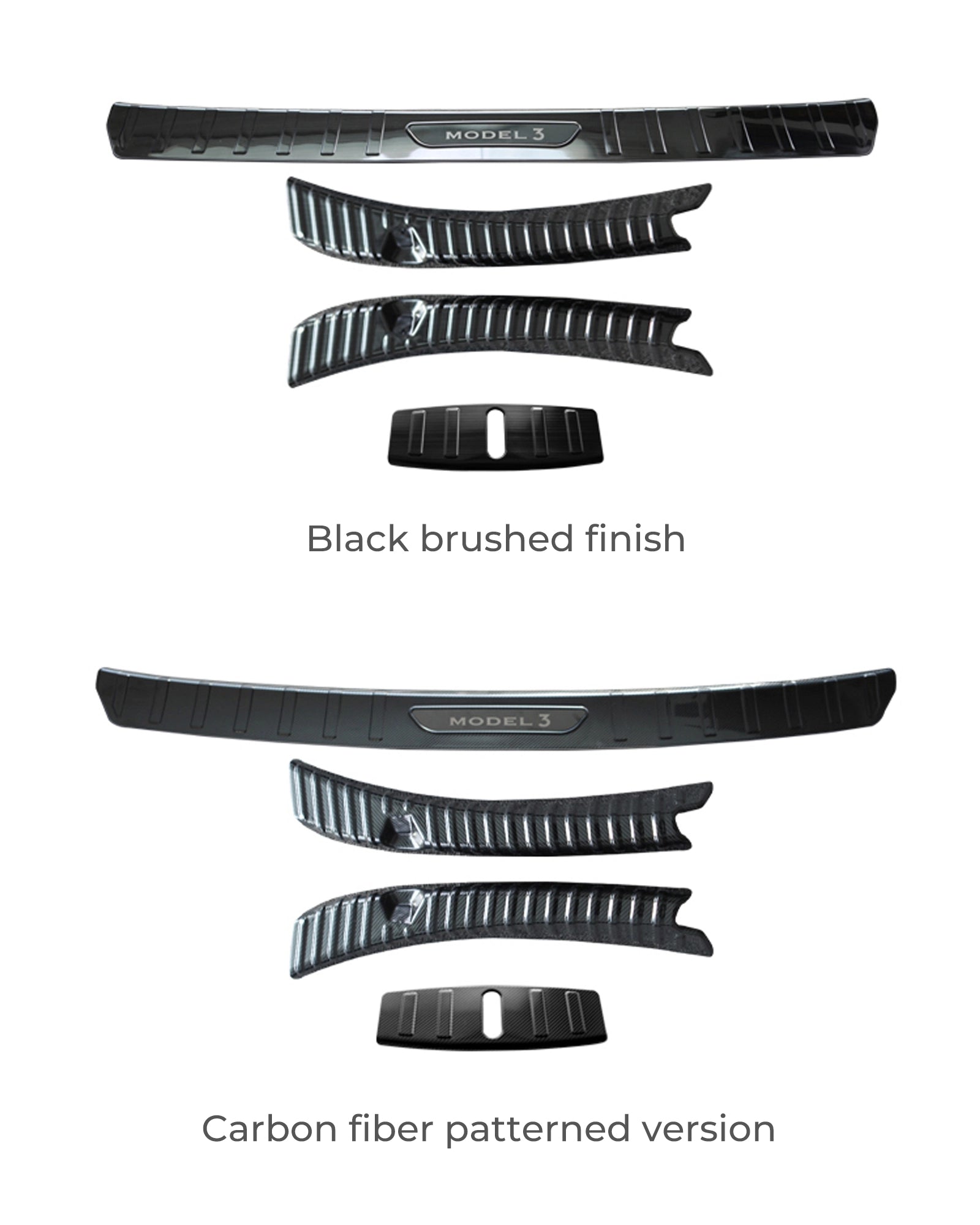 You can choose protection for both front and rear trunks, with the rear box offering internal and external options. They safeguard your luggage compartment thresholds while providing four different looks, including carbon fiber. These covers are made from ultra-thin stainless steel coated for durability.