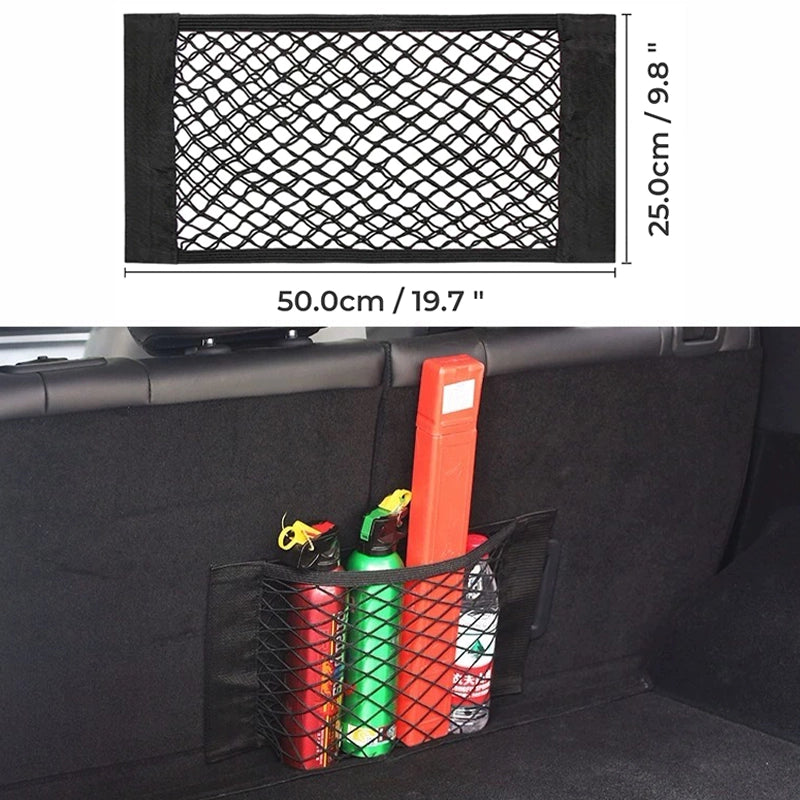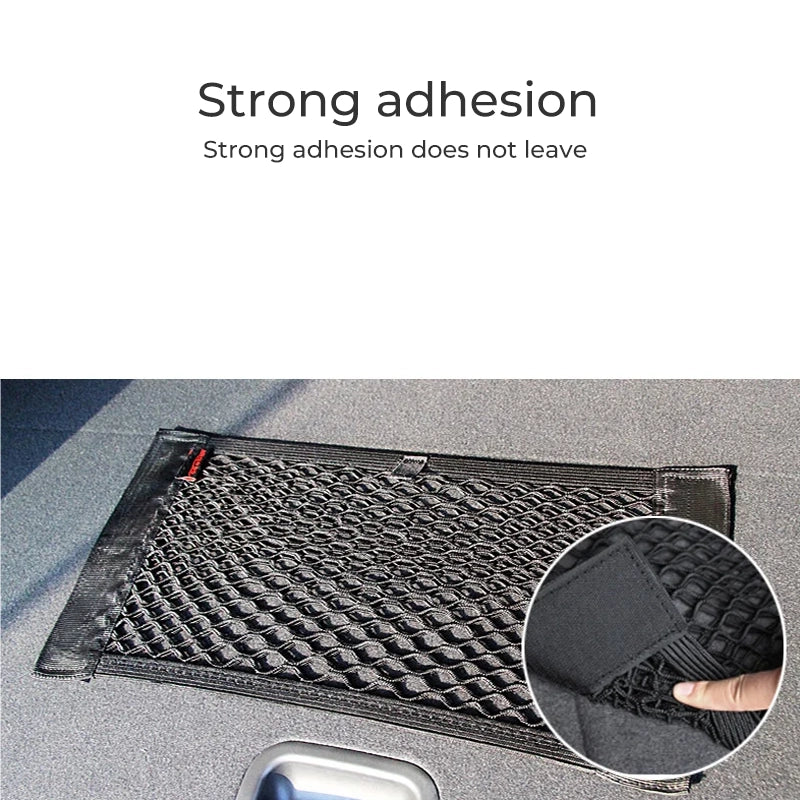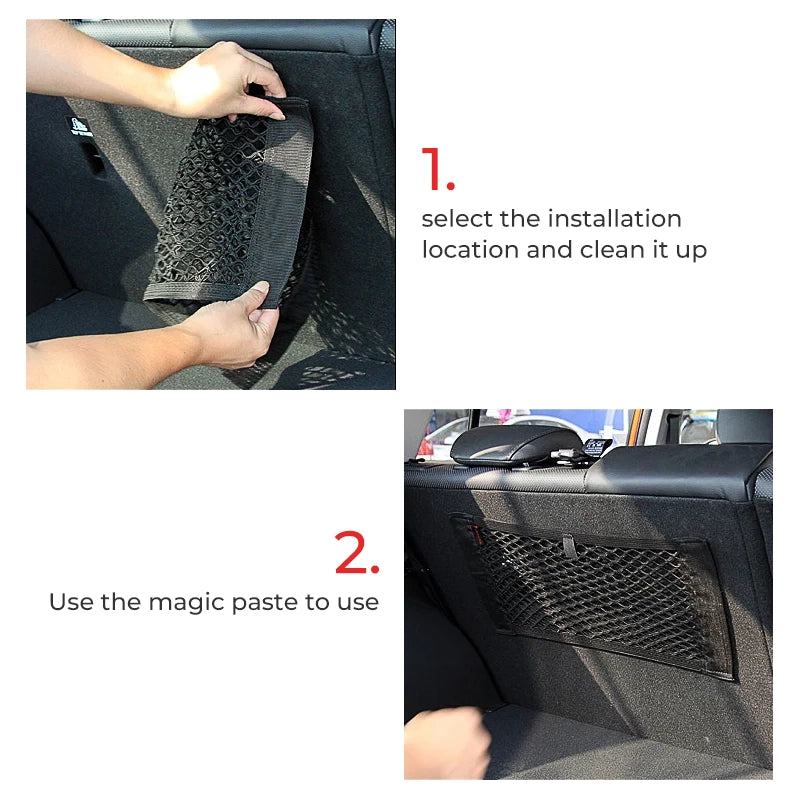 The Tesla cargo net organizer easily and securely attaches to the composite fiber surface of the seat back or car trunk with the Velcro hook. Only one step can be installed or removed easily. No additional retrofitting is required to make the vehicle more secure. (not for attaching to a smooth surface). - 【STRETCHABLE】
