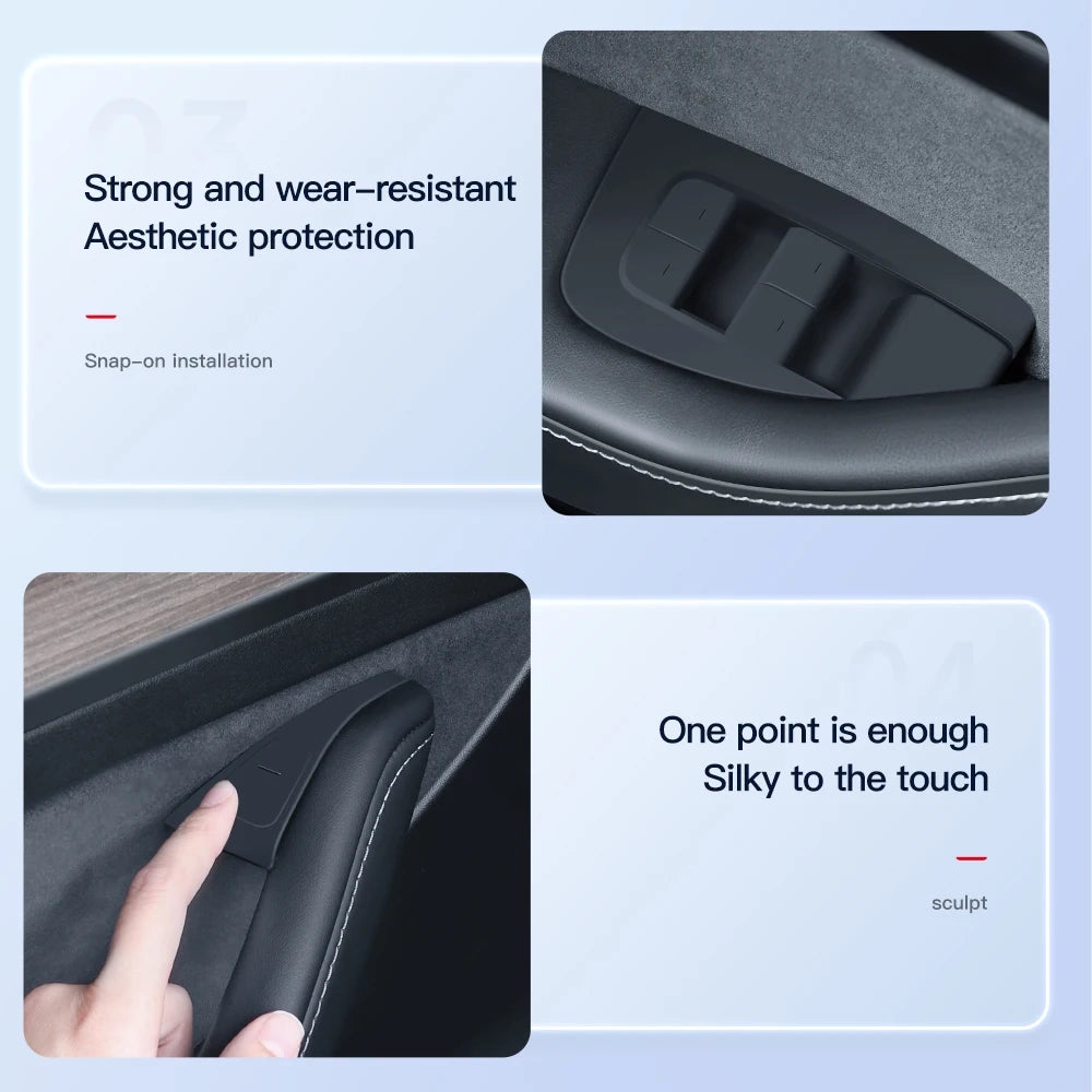 You've been overlooking this spot, haven't you? The usage frequency of your door buttons is just as high as that of your steering wheel. By the time you notice them again, they might have worn down to the point where you can't even recognize their original appearance. So why not give them the reliable protection they deserve? It's not just about aesthetics; it's about practicality. It prevents sharp scratches, preserving the integrity of your original buttons. Even if someday you decide you don't like it anymore, when you remove it, you'll find your buttons still look brand new. It might be a small accessory, but you can't ignore its significance, can you?