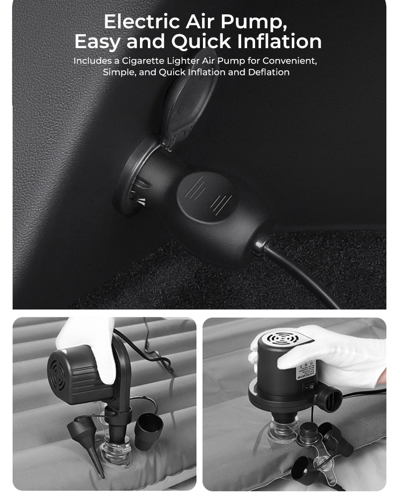Equipped with a cigarette lighter-style electric pump for fast and easy inflation, transforming the driving cabin into a comfortable sleeping area in just 3 minutes.