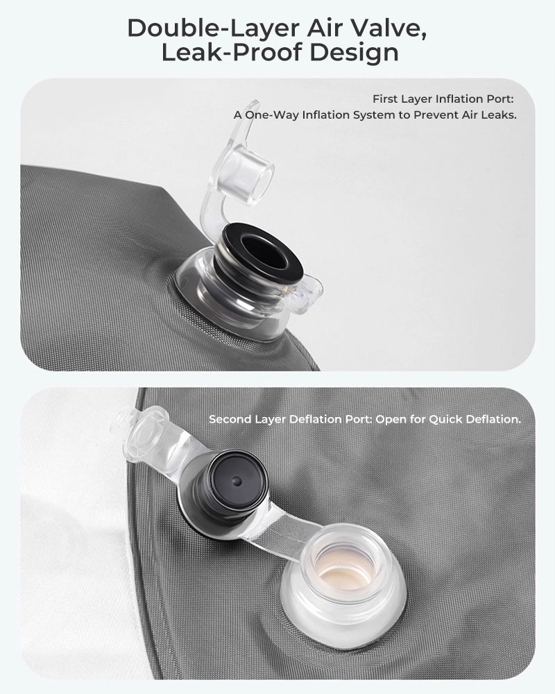 Unique double-layer valve design effectively prevents air leakage, maintaining comfort over extended periods.
