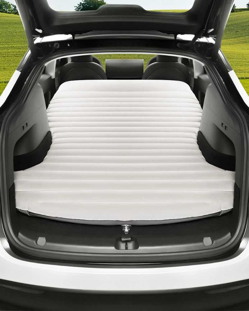 Enhance your Tesla journeys with our custom Tesla Airbed. Ideal for camping or spontaneous road trips, this mattress offers a cozy spot to relax and easily inflates using the electric pump that connects to your car. It's an essential travel accessory, ensuring comfort and ease on all your adventures, allowing you to unwind and enjoy the scenery wherever you go.