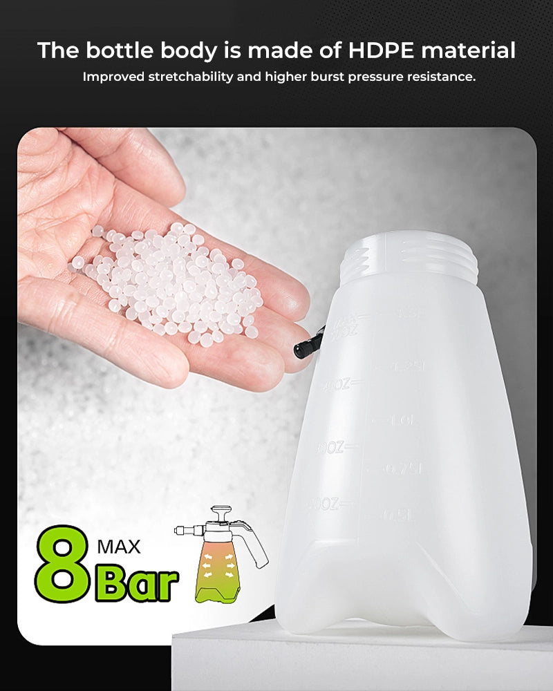 The bottle body is made of imported HDPE material, providing better stretchability and higher burst pressure resistance.