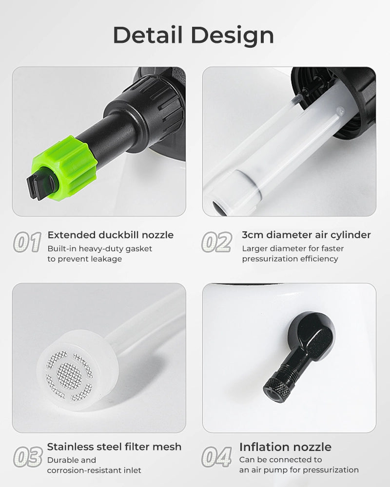 Manual inflation, easy to switch: Manual inflation is suitable for localized cleaning while connecting an air pump allows for continuous foaming to meet different needs.