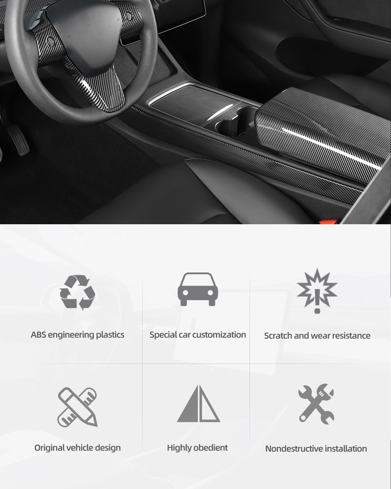 This product is compatible with Tesla Model 3 and Model Y, made from ABS material. The center console side area is prone to friction from the driver and passengers, and these decorative strips can perfectly protect the car from wear and tear while adding a unique style to your vehicle's interior.