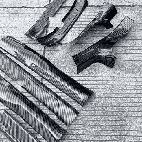 Combining carbon fiber and a UV coating for a durable, attractive surface. The addition of ABS plastic at the base enhances lightness and durability.
