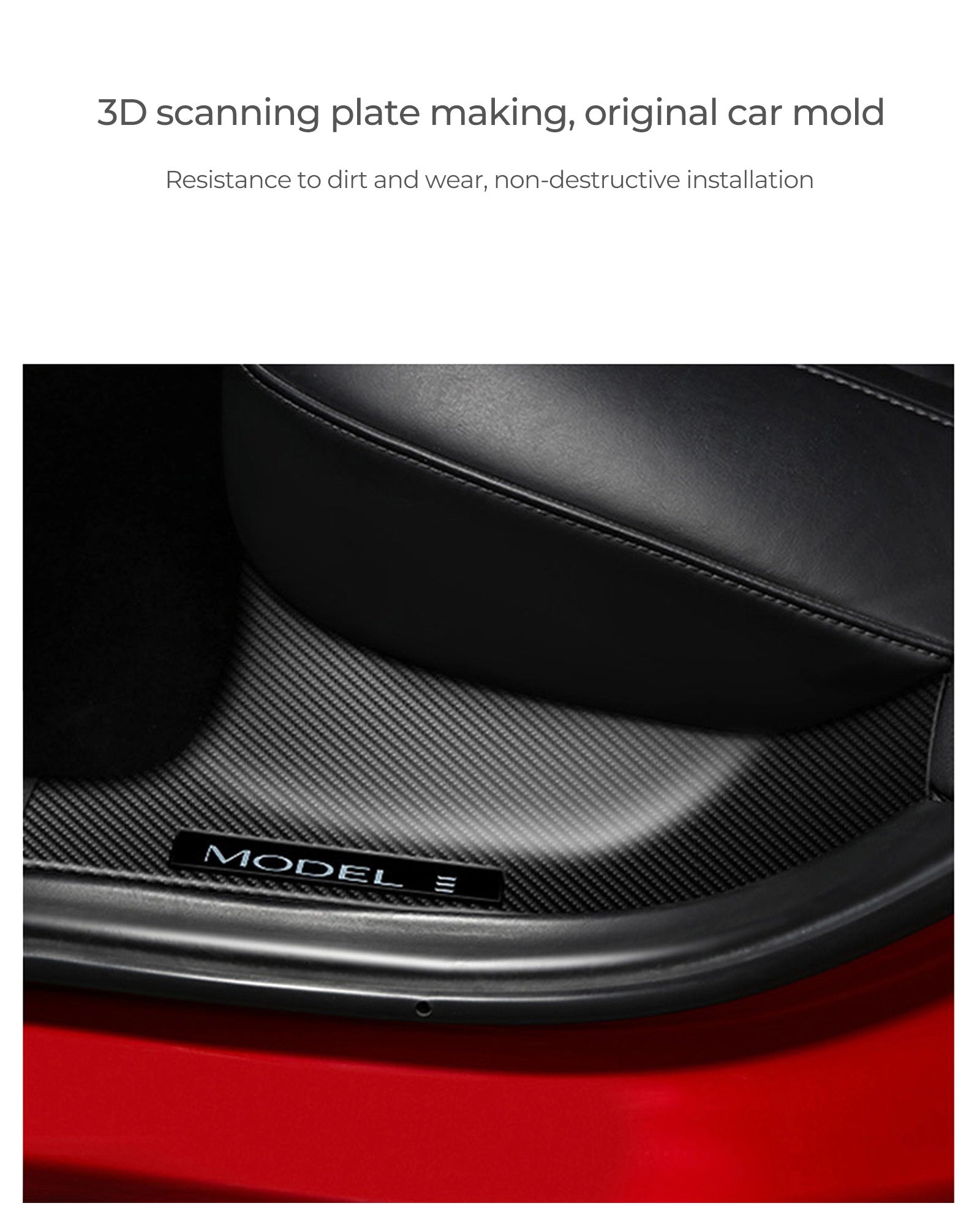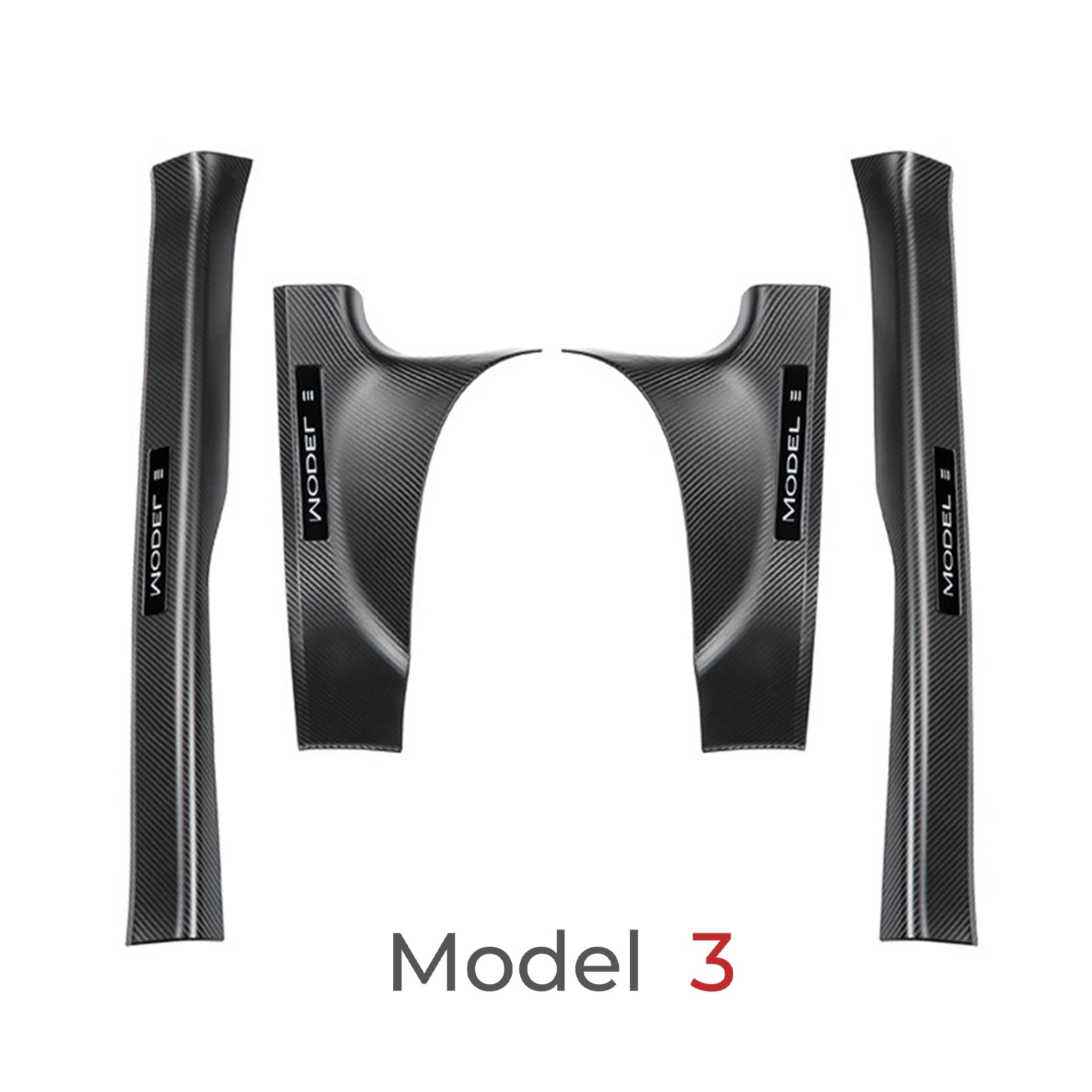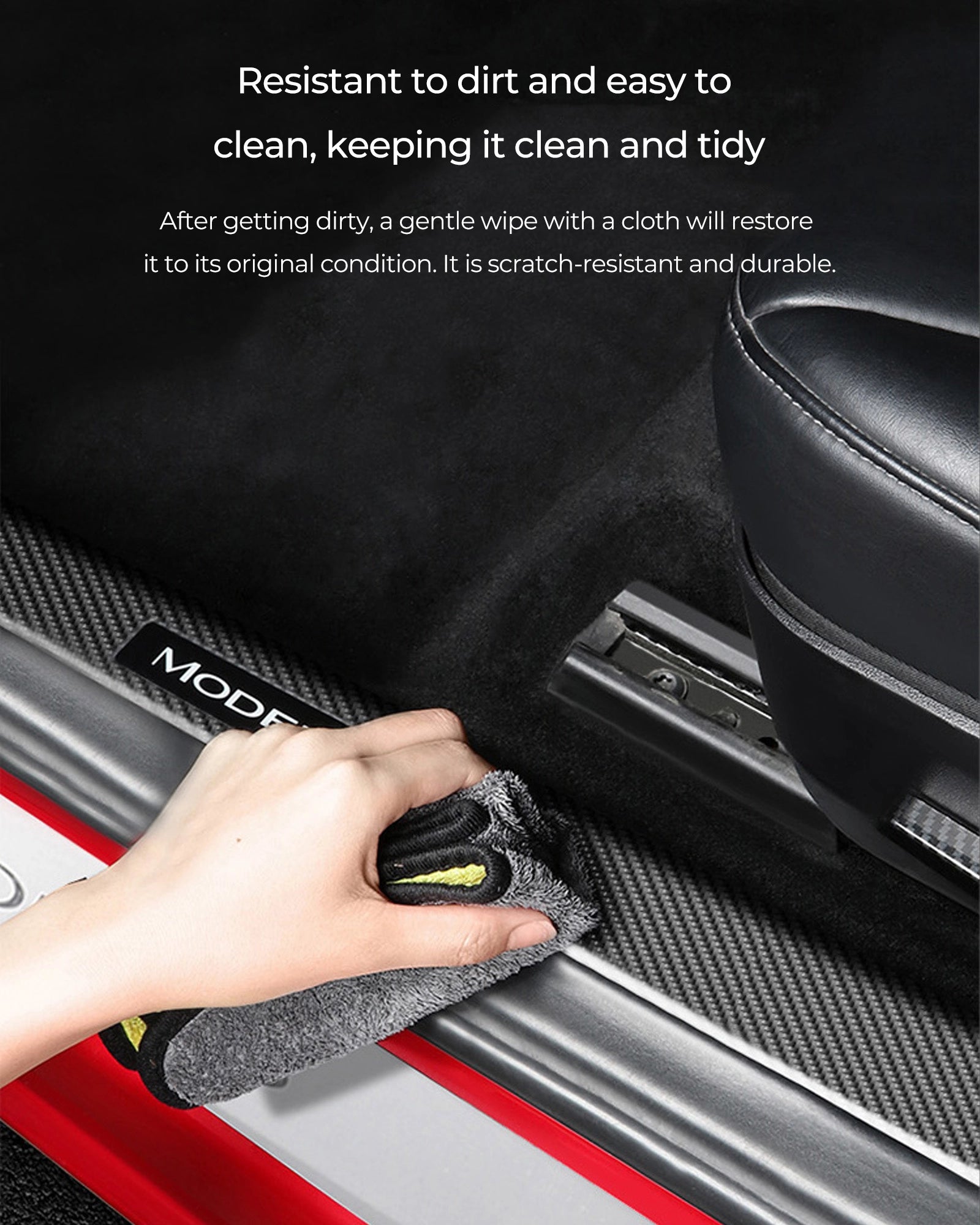 Simply clean the sills with water and a cloth, then align the corners of the carbon fiber sill protectors with the sills on your Model 3/Y and press gently to ensure the adhesive bonds securely. When it comes to replacement or removal, use a hairdryer or heat gun to apply heat to the molded carbon fiber sill protectors.