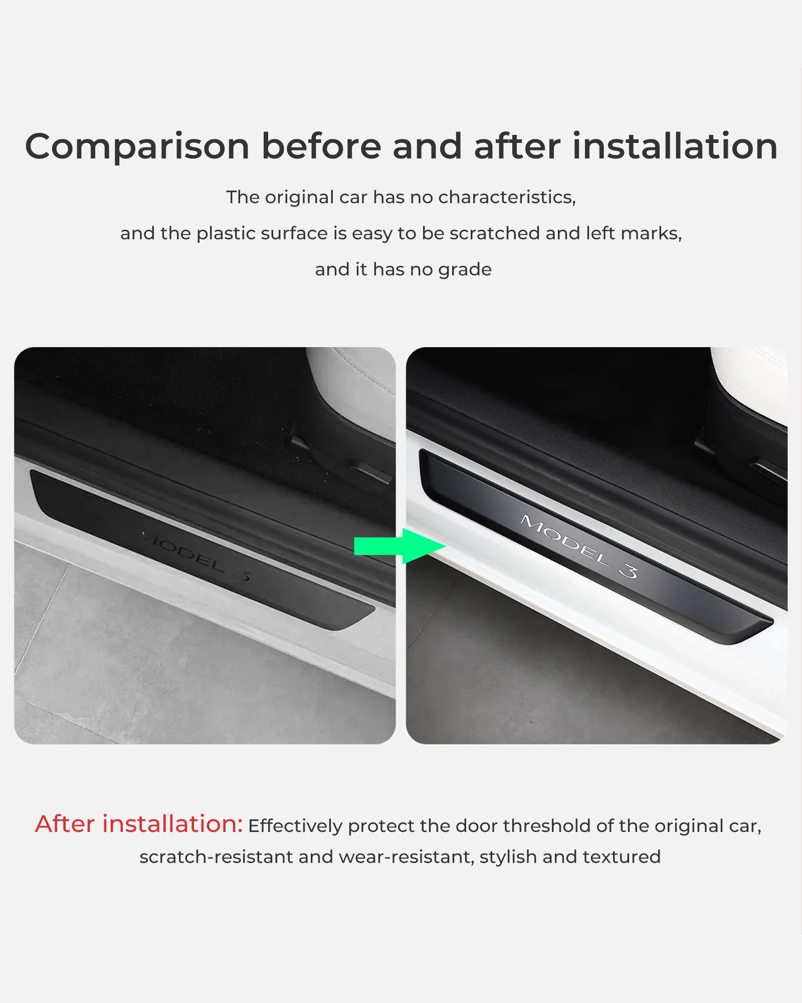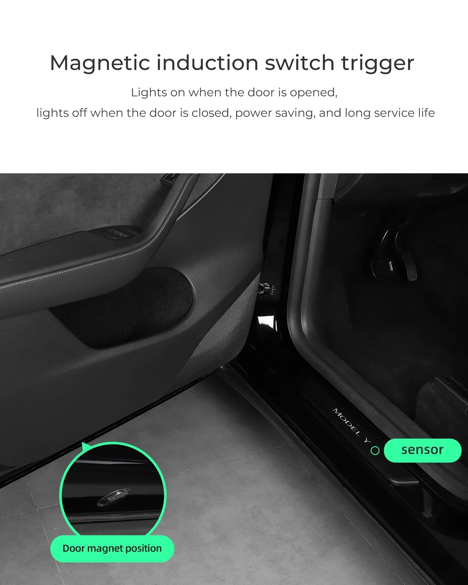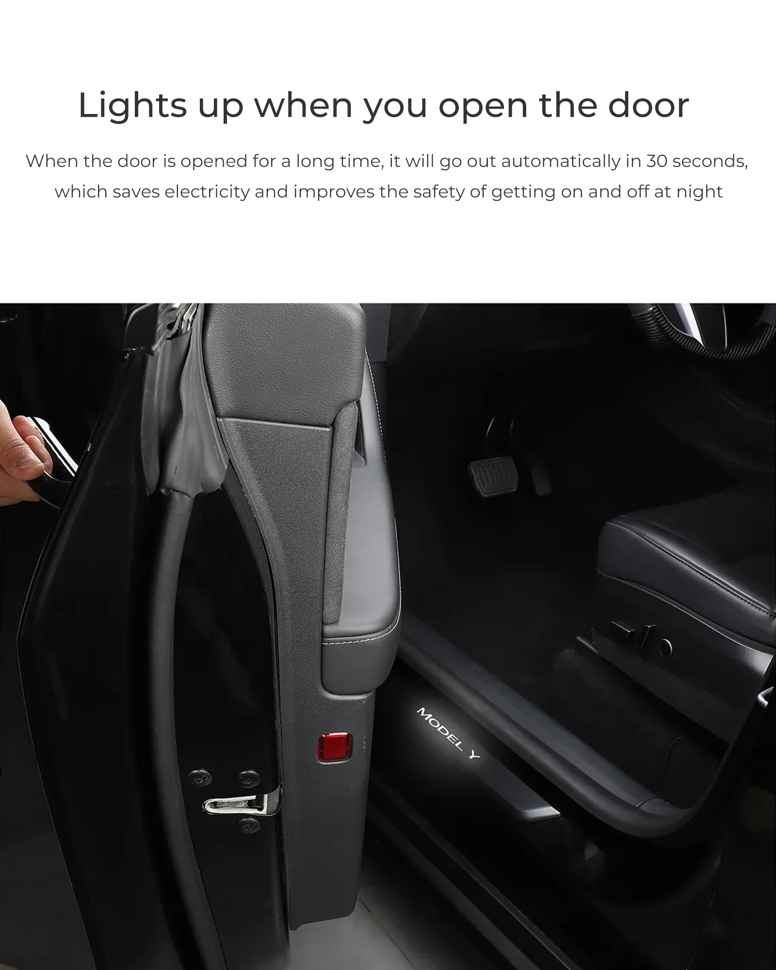 It not only adds unique charm and protection to your Tesla, but its effects are beyond imagination! Don't miss out on Teswing's brand-new Door Sill Protection Kit! This is not just a beautifully tailored accessory for Tesla owners; it also features excellent anti-scratch and anti-scuff capabilities, along with built-in motion-activated illumination! Let your car dazzle in the darkness of the night, eliminating worries about bumps and scrapes to your legs when getting in and out of your Tesla at night.