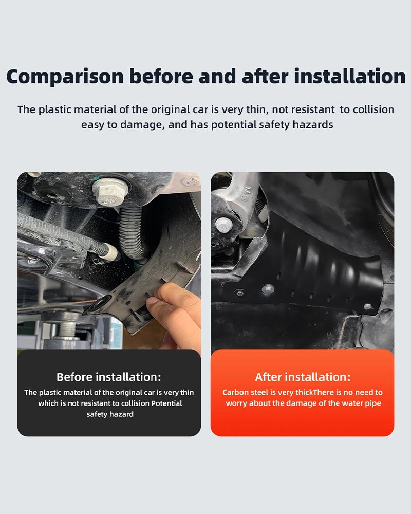 This automotive under-chassis cooling liquid pipe guard is specifically designed for Tesla Model 3 and Model Y , ensuring a perfect fit.