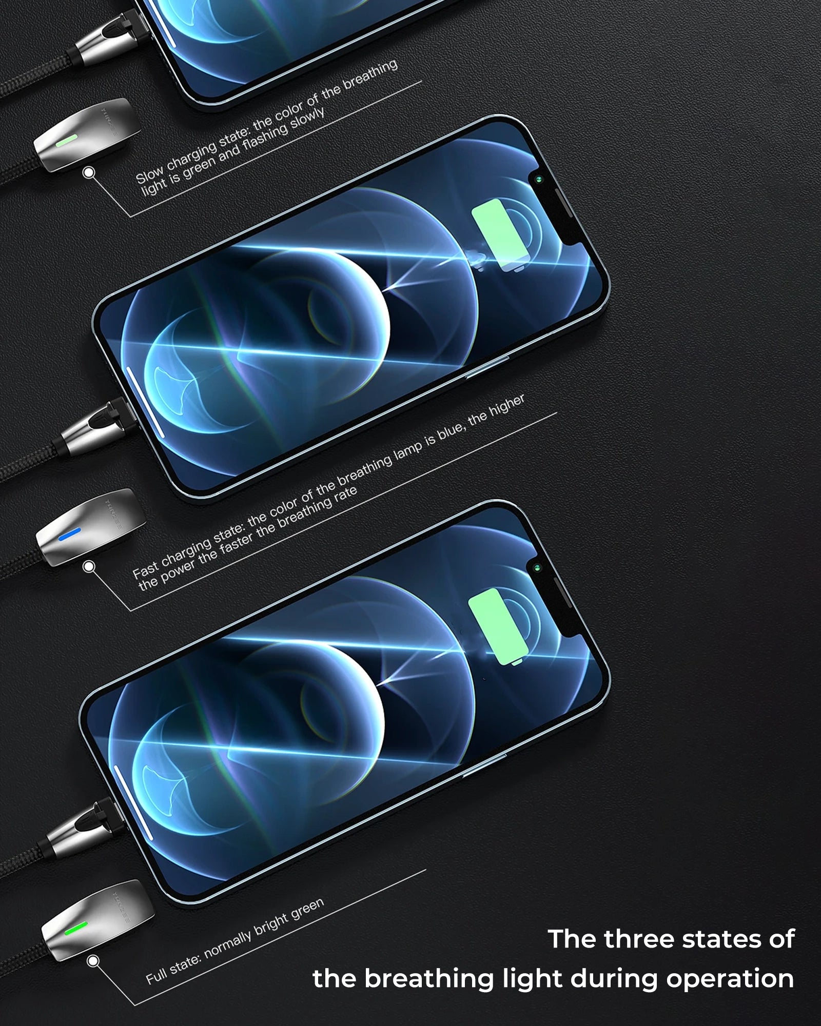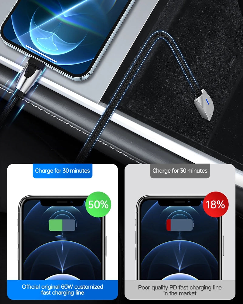 With a peak power of up to 60W, this cable ensures high-efficiency charging, accelerating the charging speed by 300% and offering constant temperature fast charging for your safety and convenience. - 【Visual Charging Indicator】: