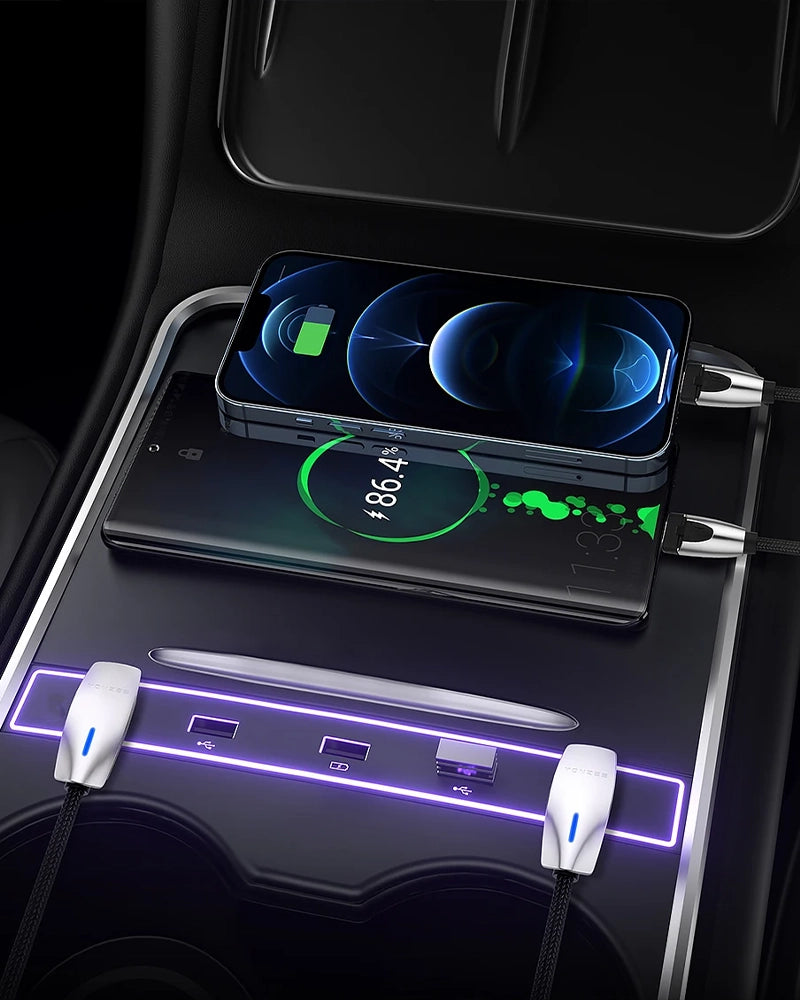 The cable provides a real-time visual indication of the charging status, allowing you to check if your device supports fast charging across three distinct charging states. - 【Designed for Tesla】: