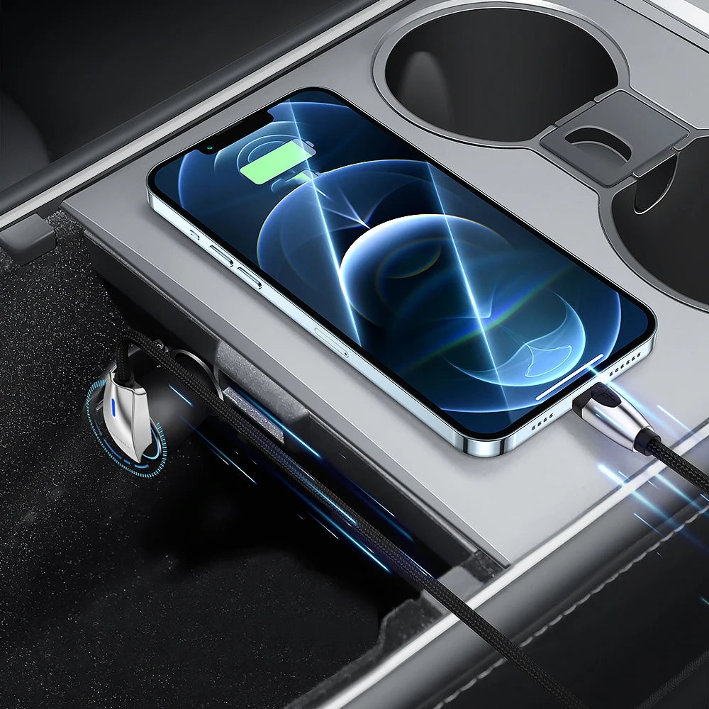 The Tesla Fast Charging Data Cable for Model 3/Y, a revolutionary accessory designed to enhance your Tesla driving experience with its advanced charging capabilities and durable design. This 60W elbow fast charging data cable offers not just a rapid charging solution but also a visually appealing and practical design to suit all Tesla Model 3/Y owners' needs.
