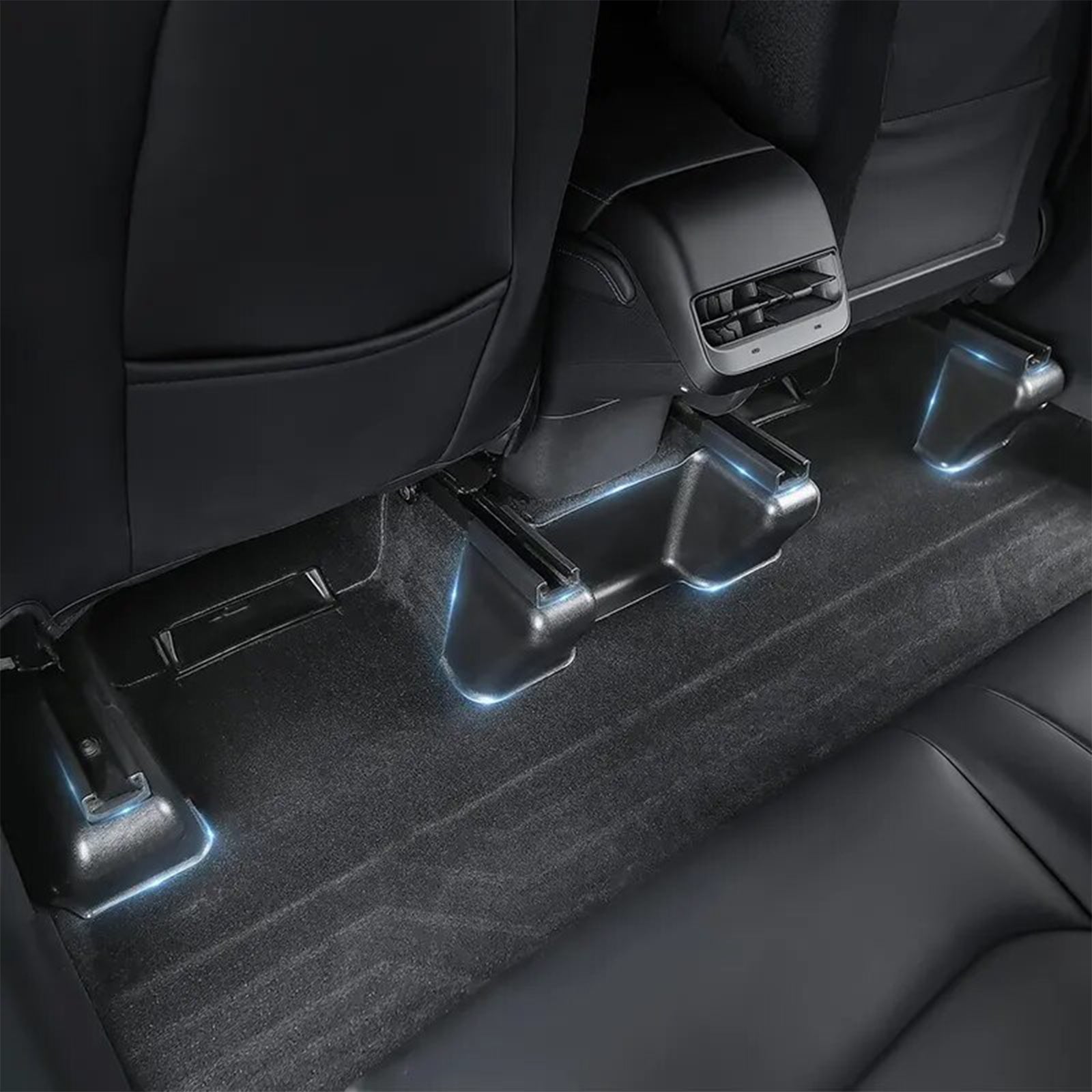 Complete Sliding Seat Rail Coverage from the front seats to the back with full carpet coverage. many customers have requested a product to prevent wear, dirt, or damage to the standpipe legs covered with carpet, making them look just like the other plastic parts of Model Y's doors and pillars.