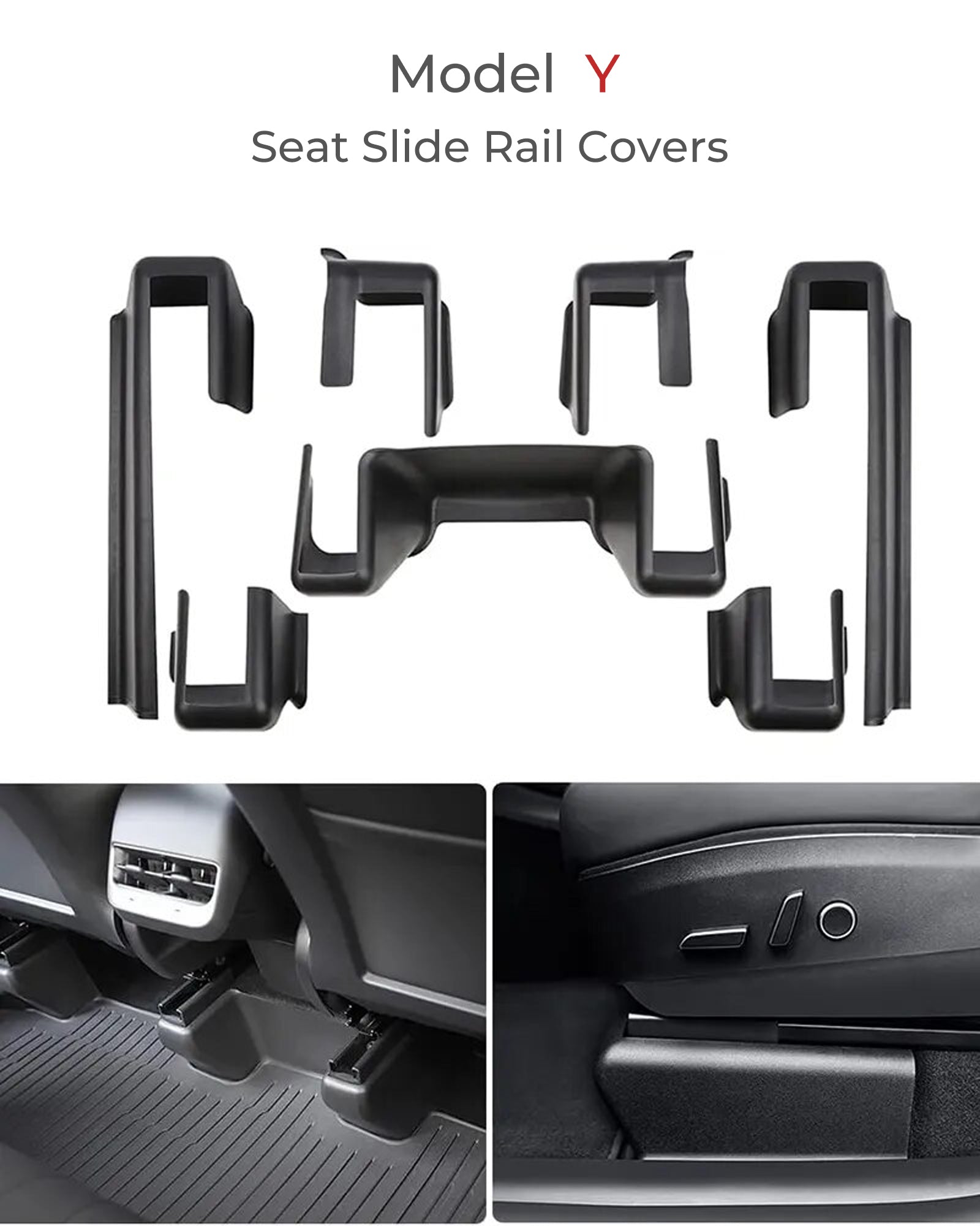 Compatibility: Designed for 5-seat versions only. Front seat rail covers may not fit certain early 2020 Model Ys. Tesla changed the front edge from a square to a rear-angled style. If you have a 2020 model, please ensure the front end of your front seat rails is not flat. Refer to the last picture to confirm your Model Y looks similar to ours.