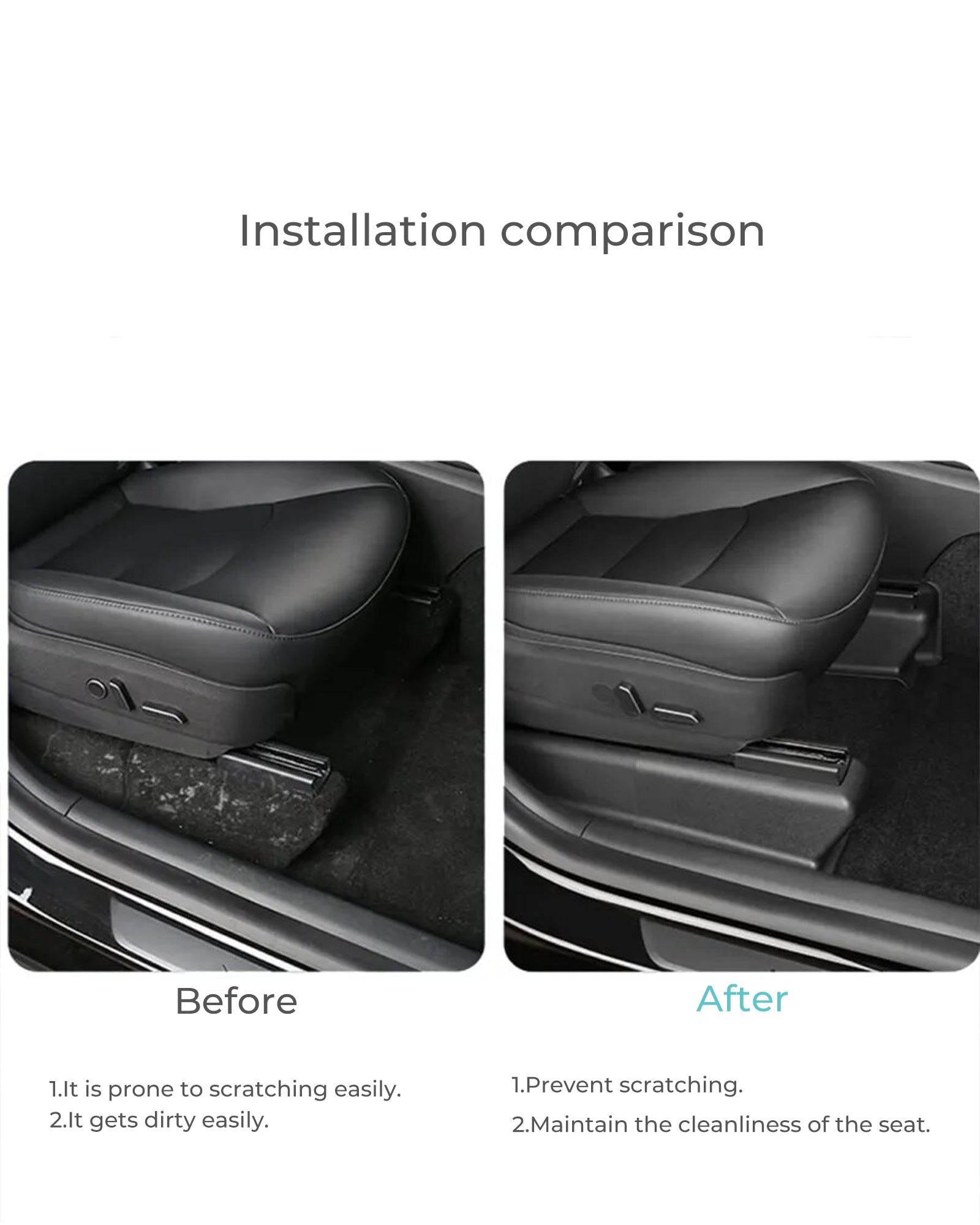 2. Scratch and Wear Protection: Provides additional protection to your car's seat rails, preventing scratches and wear prolonging their lifespan