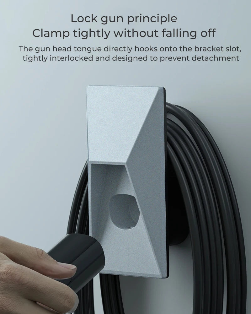 Ingeniously incorporates a locking mechanism that securely clamps the charging gun in place, preventing accidental falls or dislodgement. -