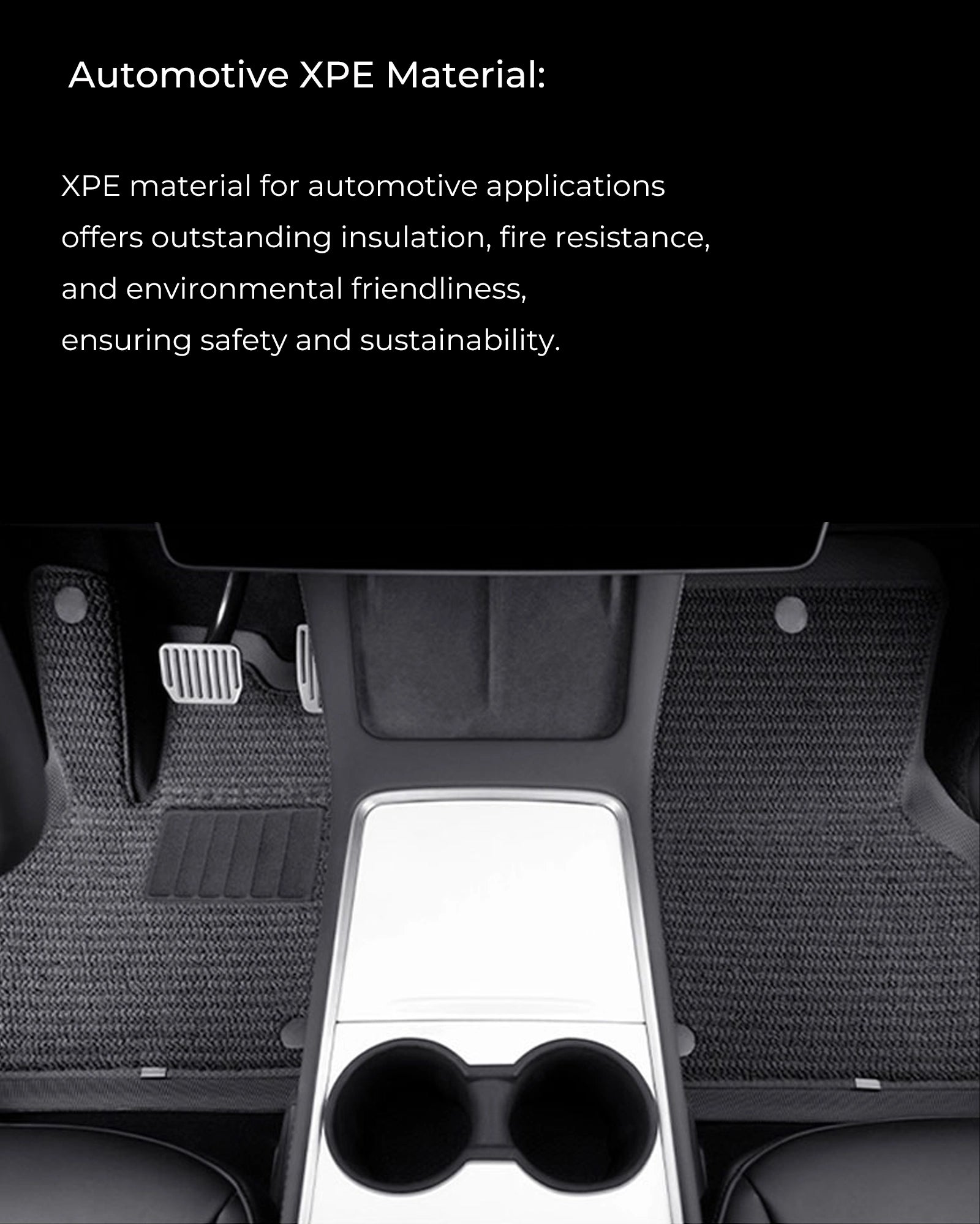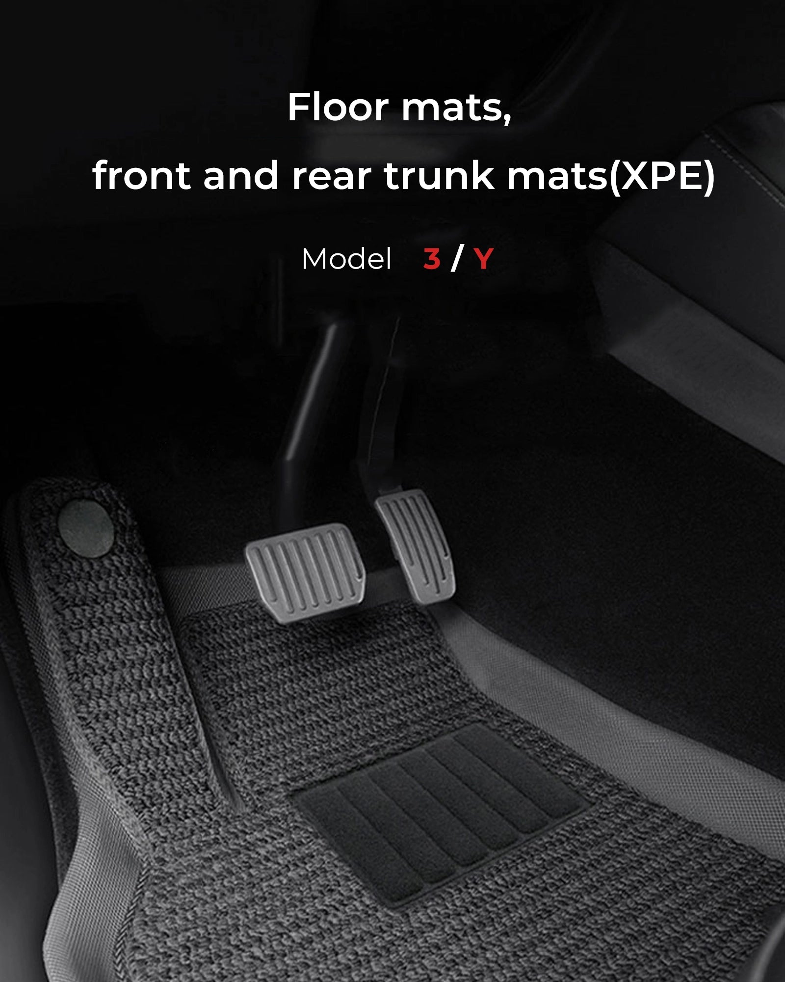 Teswing Full Car Floor Mats (XPE) are specifically designed for Tesla Model 3/Y vehicles. Crafted from advanced XPE material, they offer custom cutting, all-weather waterproof and stain-resistant protection, as well as exceptional durability. These mats provide a perfect fit for your vehicle, enhancing the driving experience while also prioritizing style and eco-friendliness. It's an upgrade choice you shouldn't miss!