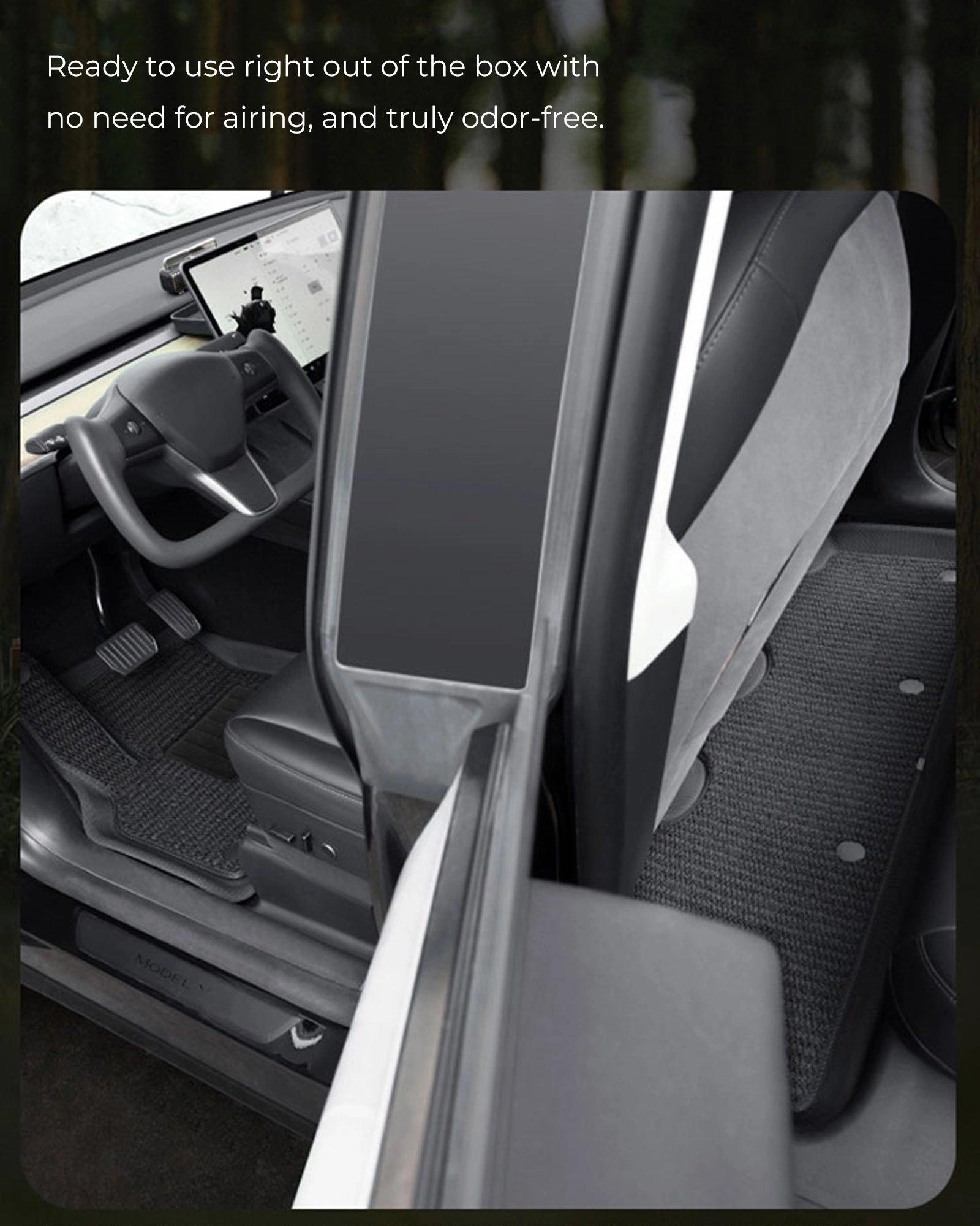 Waterproof and stain-resistant with a polyester looped fleece surface to capture debris, protecting your Tesla Model Y's floor. Easy to clean, leaves no dirt behind.
