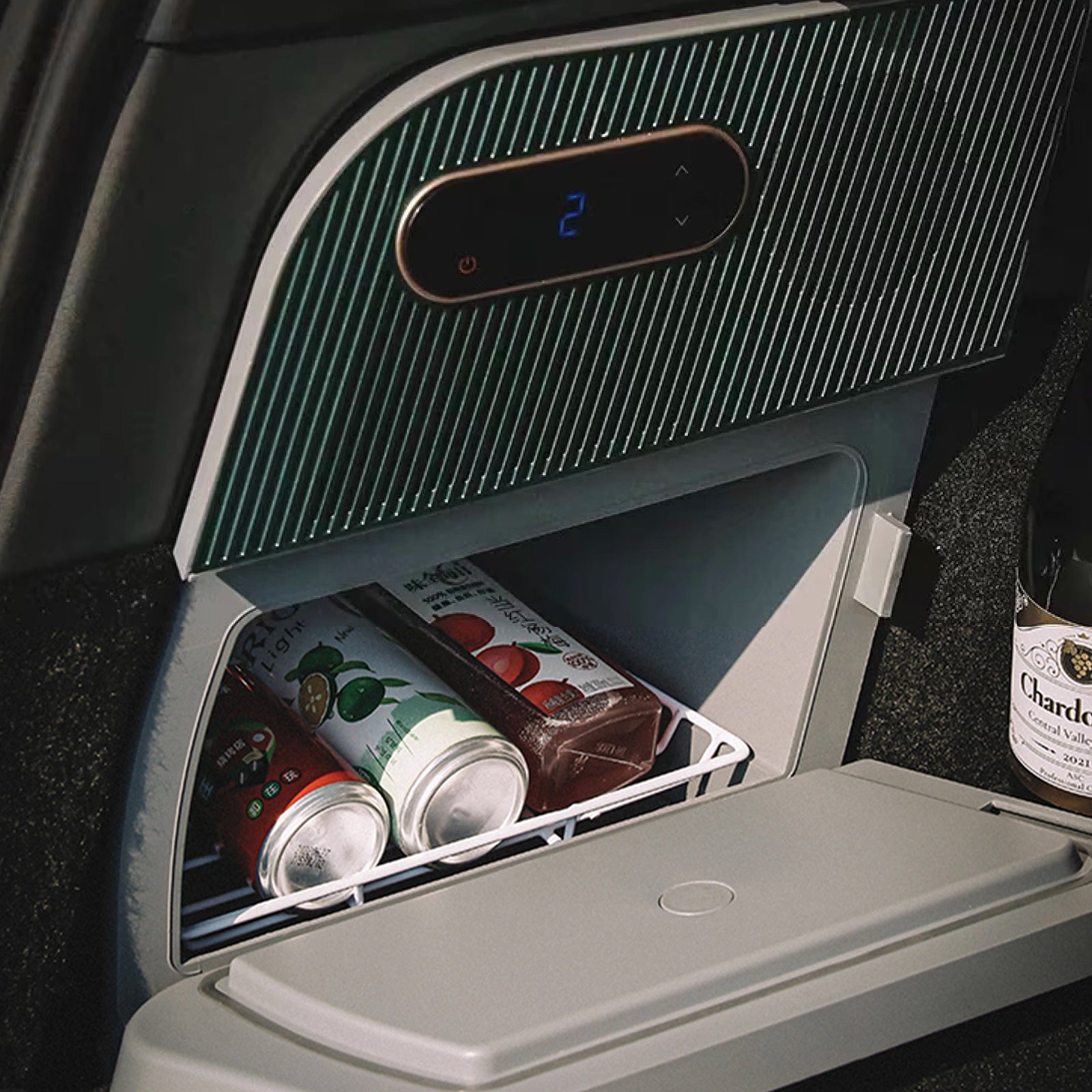 This is a refrigerator device that can be placed inside the car's trunk to maintain the temperature of food and beverages, typically used during long road trips or camping. It's a must-have for outdoor enthusiasts, hikers, and picnickers!