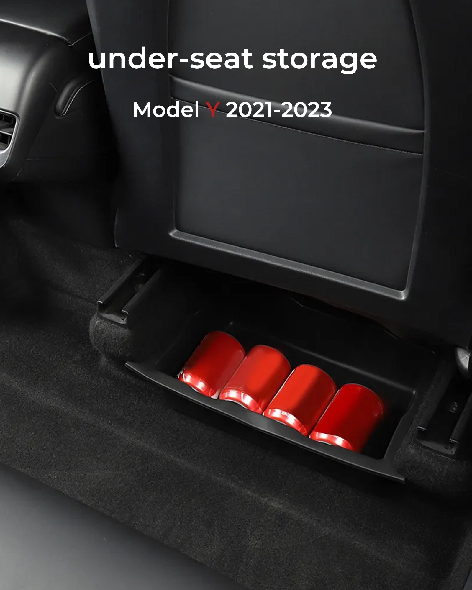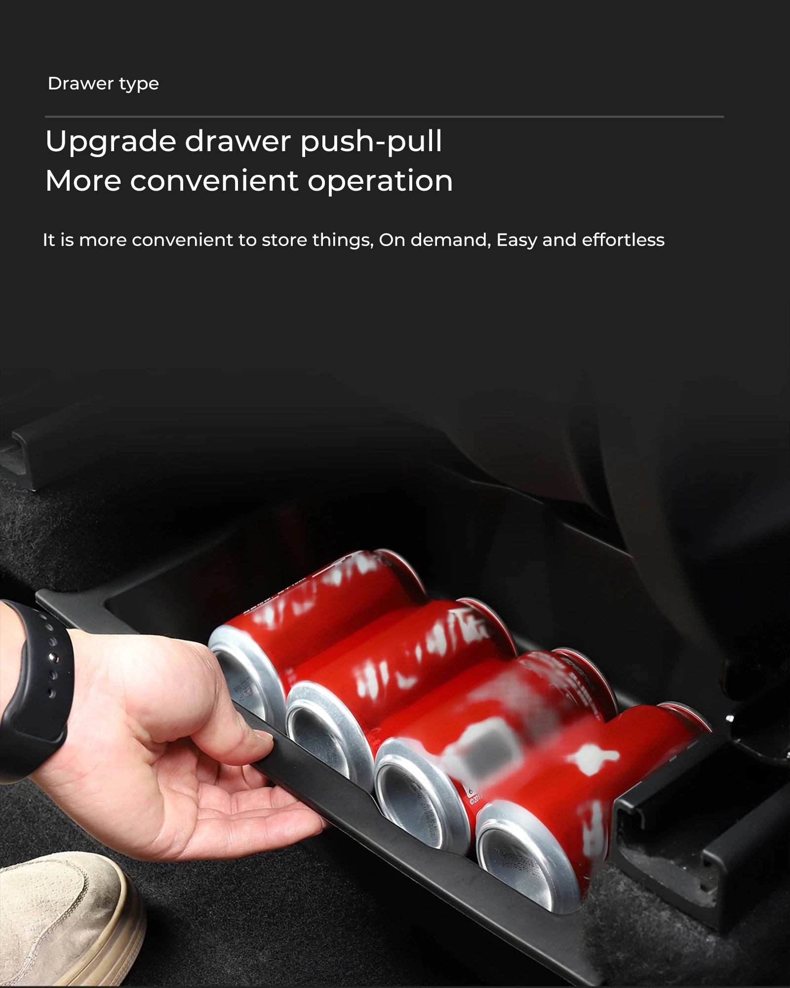 Seat bottom storage box organizer drawer, designed for Tesla Model Y accessories.