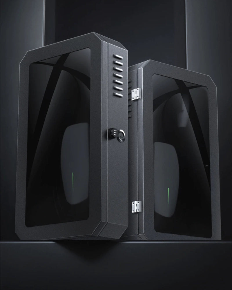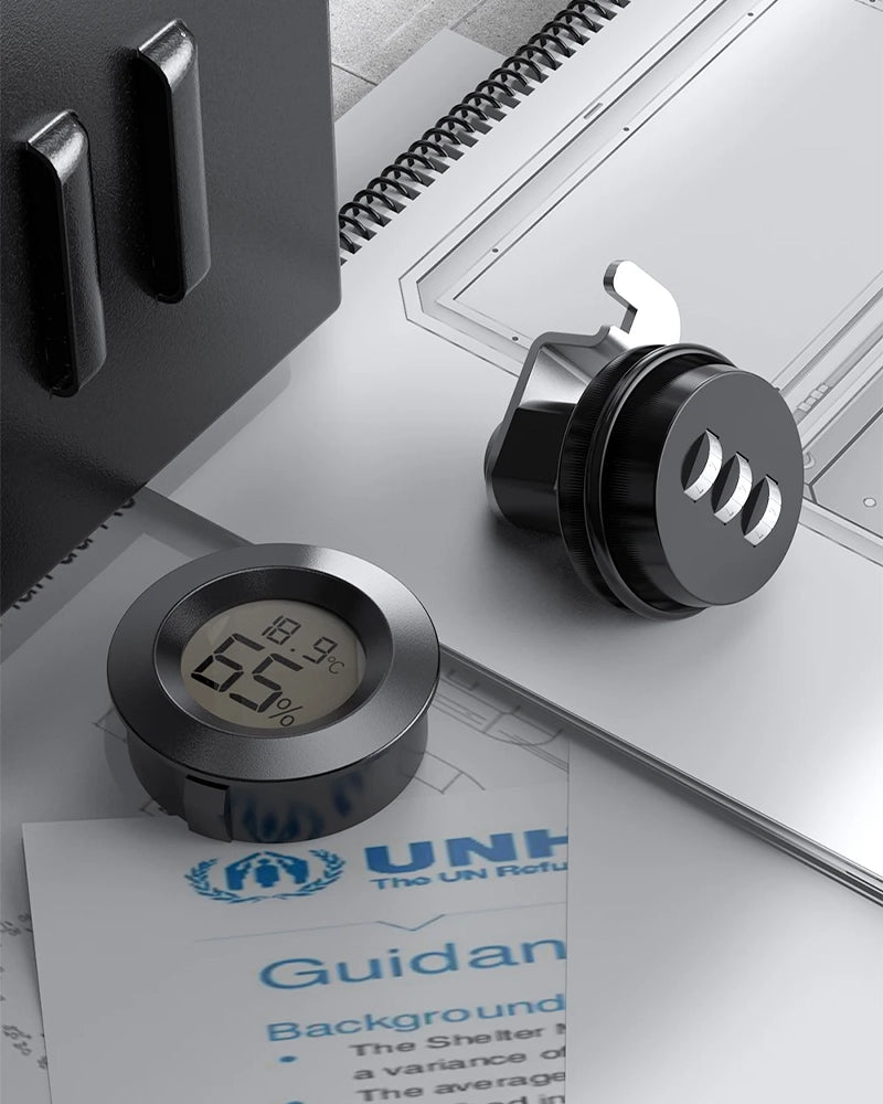 Equipped with a mechanical combination lock and an LCD display for temperature and humidity, this protection box offers both security and information at a glance.