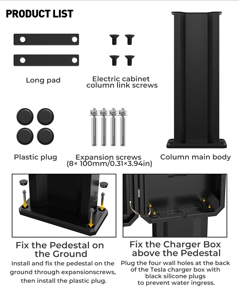 With dimensions of 31.4 * 13.7 * 3.8 inches, this protection box is the perfect companion for your Tesla Model 3/Y/S/X charging pile. By choosing this product, you not only enhance the safety and functionality of your charging setup but also invest in a solution that blends seamlessly with your Tesla's aesthetics. Upgrade your charging experience with the Tesla Charging Pile Protection Box today and enjoy the peace of mind that comes with top-notch protection.