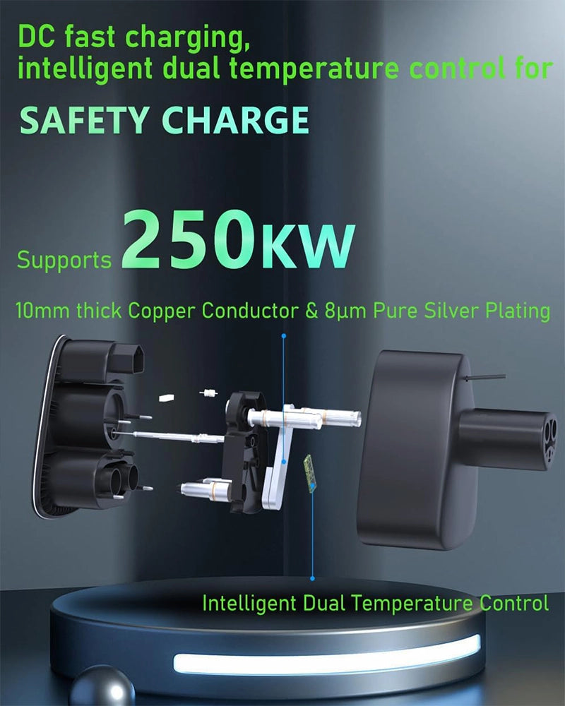 【Optimized Design for Efficiency】: Our engineers have revamped the CCS adapter's internal structure, enhancing the main terminal's thickness from 8mm to 10mm. This upgrade improves conductivity while maintaining the adapter's compact and user-friendly nature.