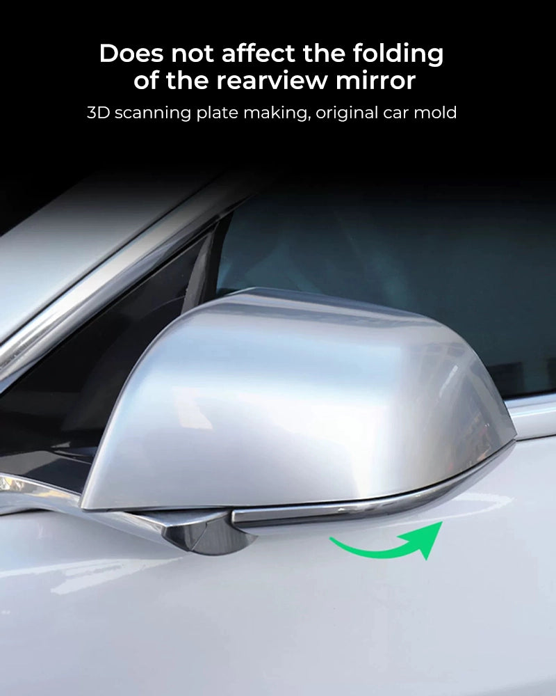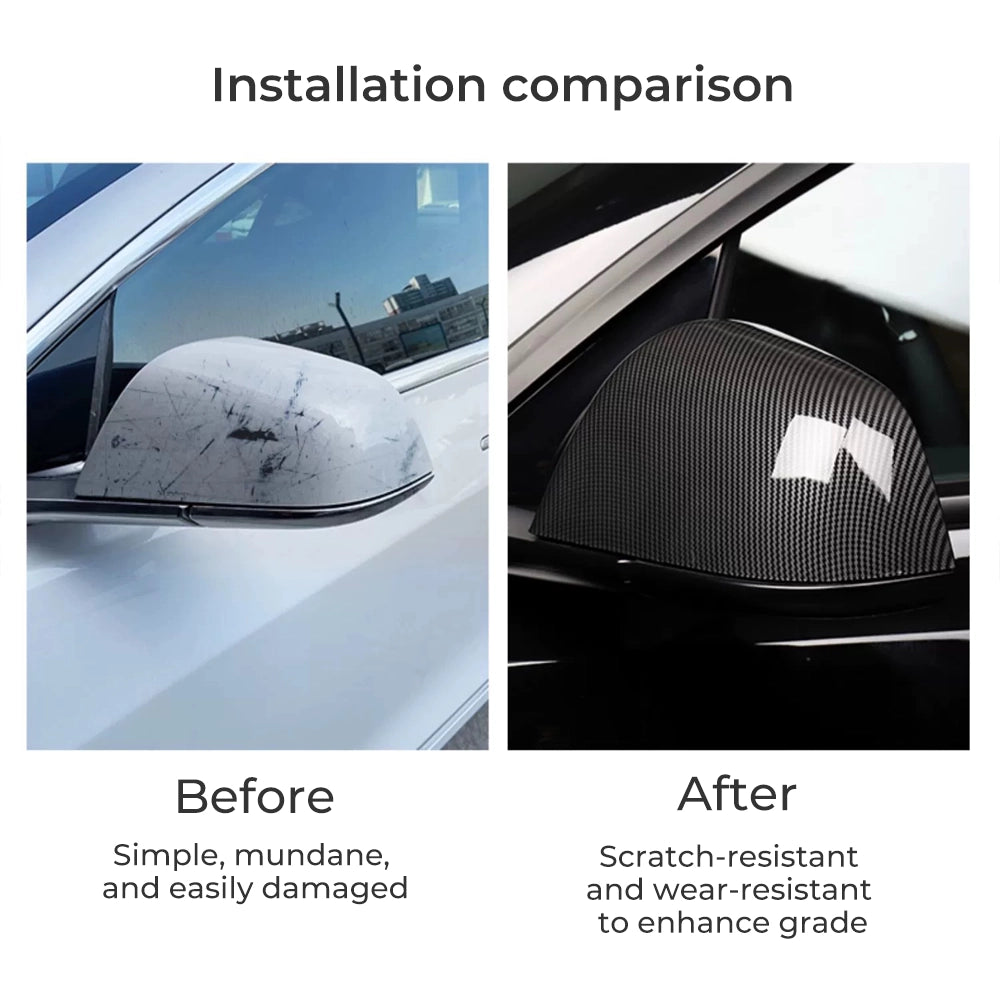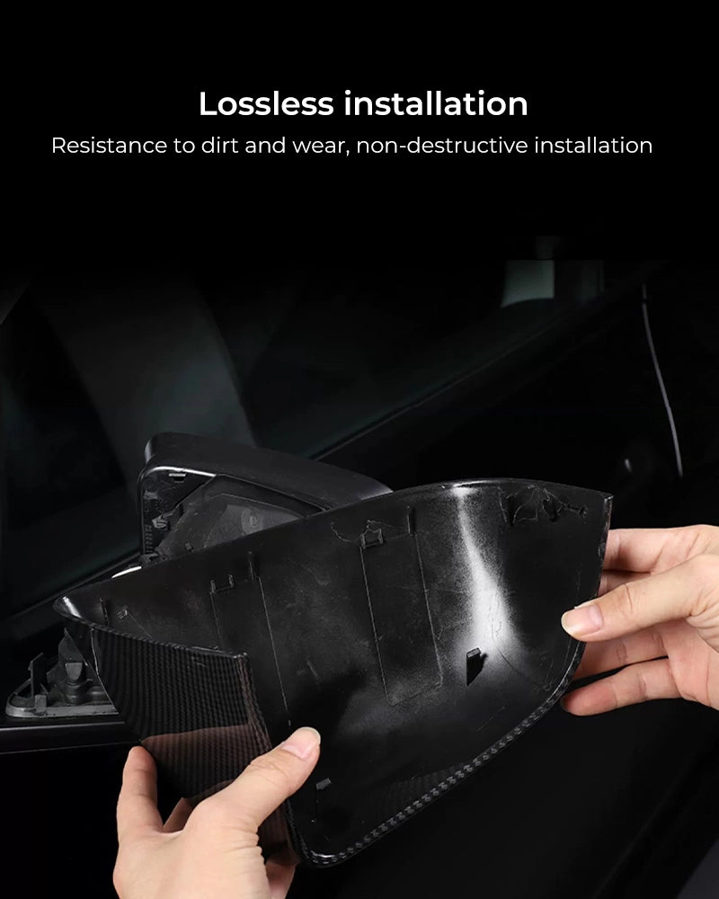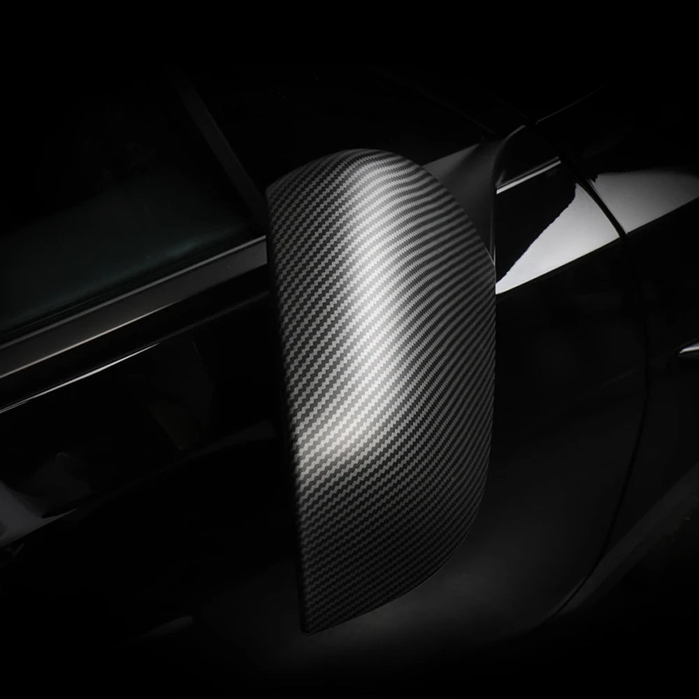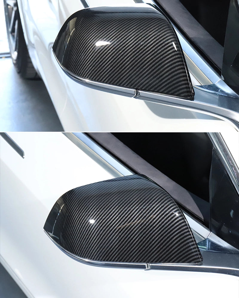 Made from quality ABS plastic with a carbon fiber pattern. Easy installation with double-sided tape, no tools needed. Protects Tesla's rearview mirror without hindering folding.
